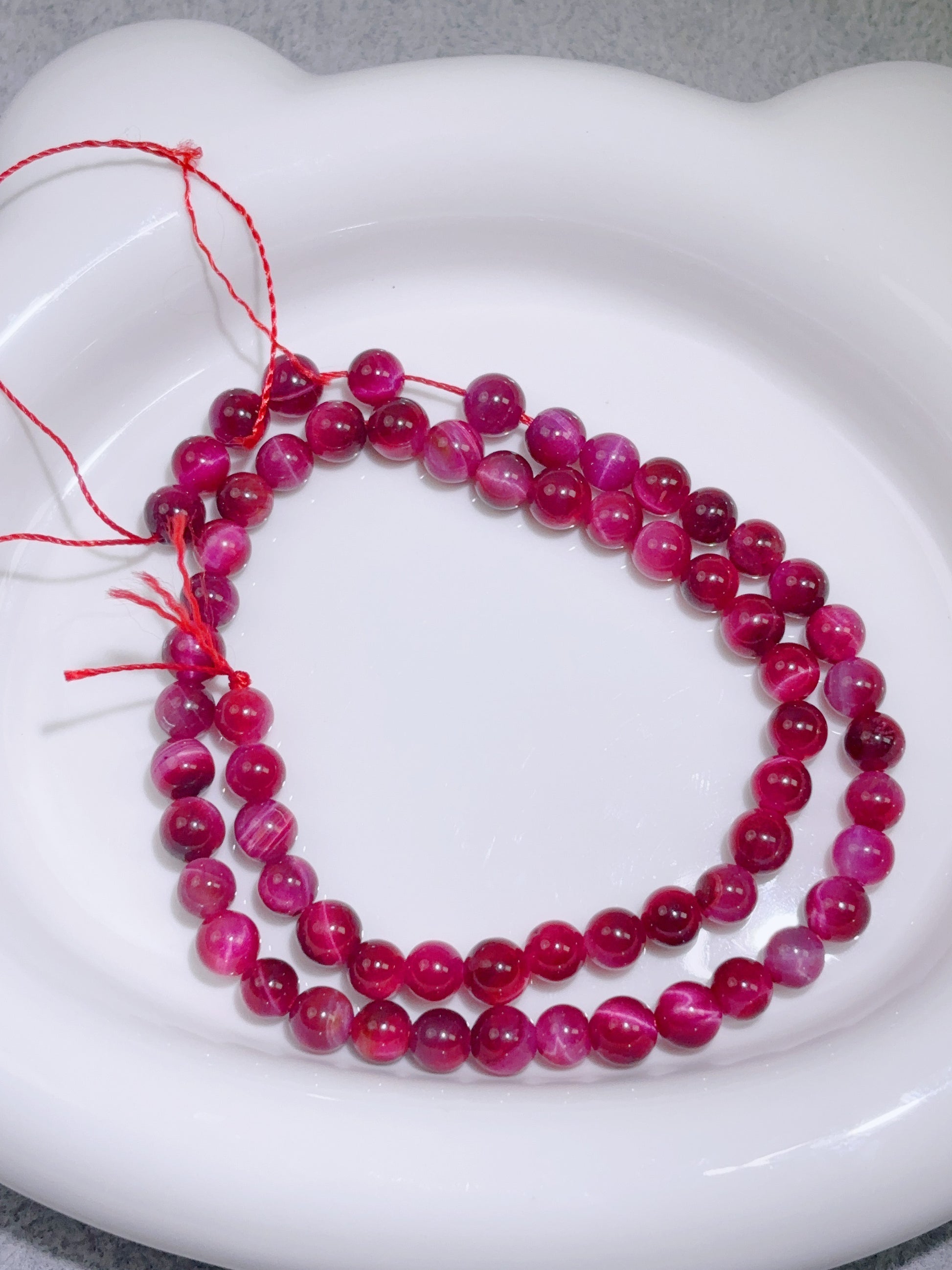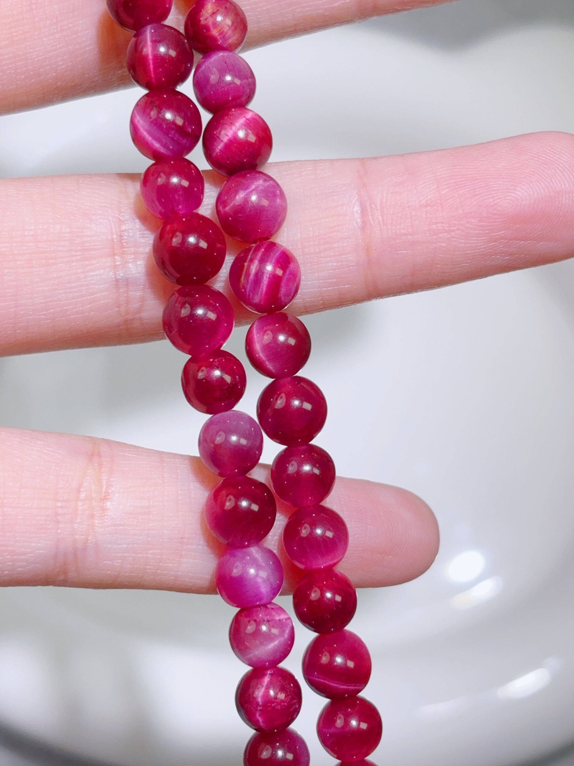 天然石連材-ビーズ-6 mmバービーピンク虎眼石