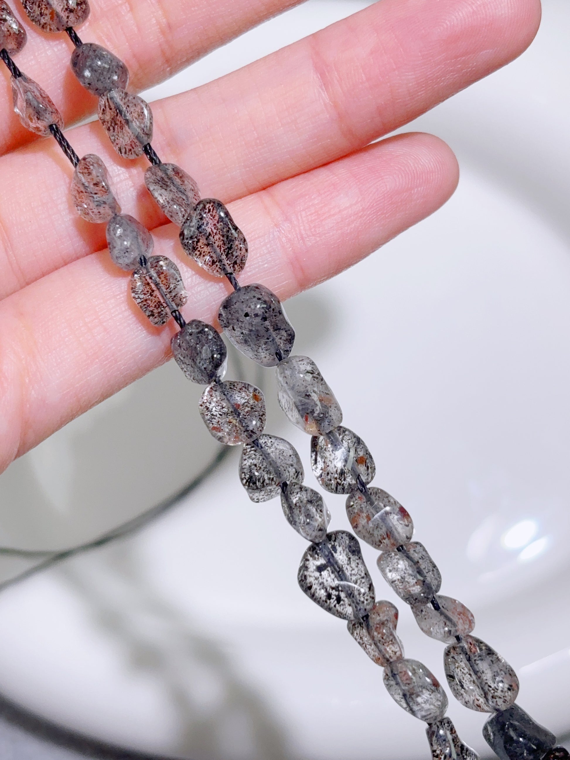 天然石連材-糖豆-7-9 mm黒ストロベリーストーン