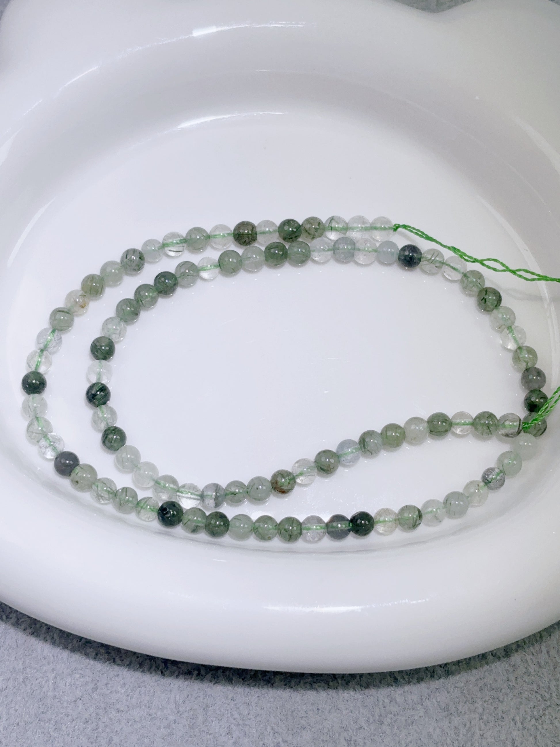 天然石連材-円珠-4 mm緑髪晶緑ルチル