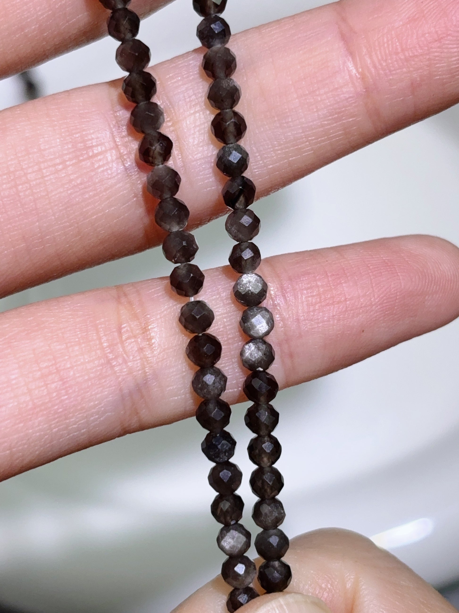 天然石連材-算盤多面-3 mmシルバーオブシディアン