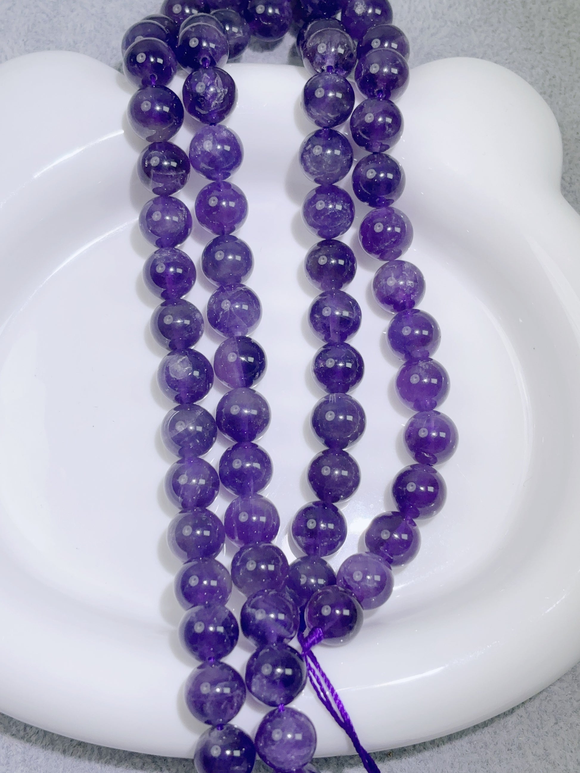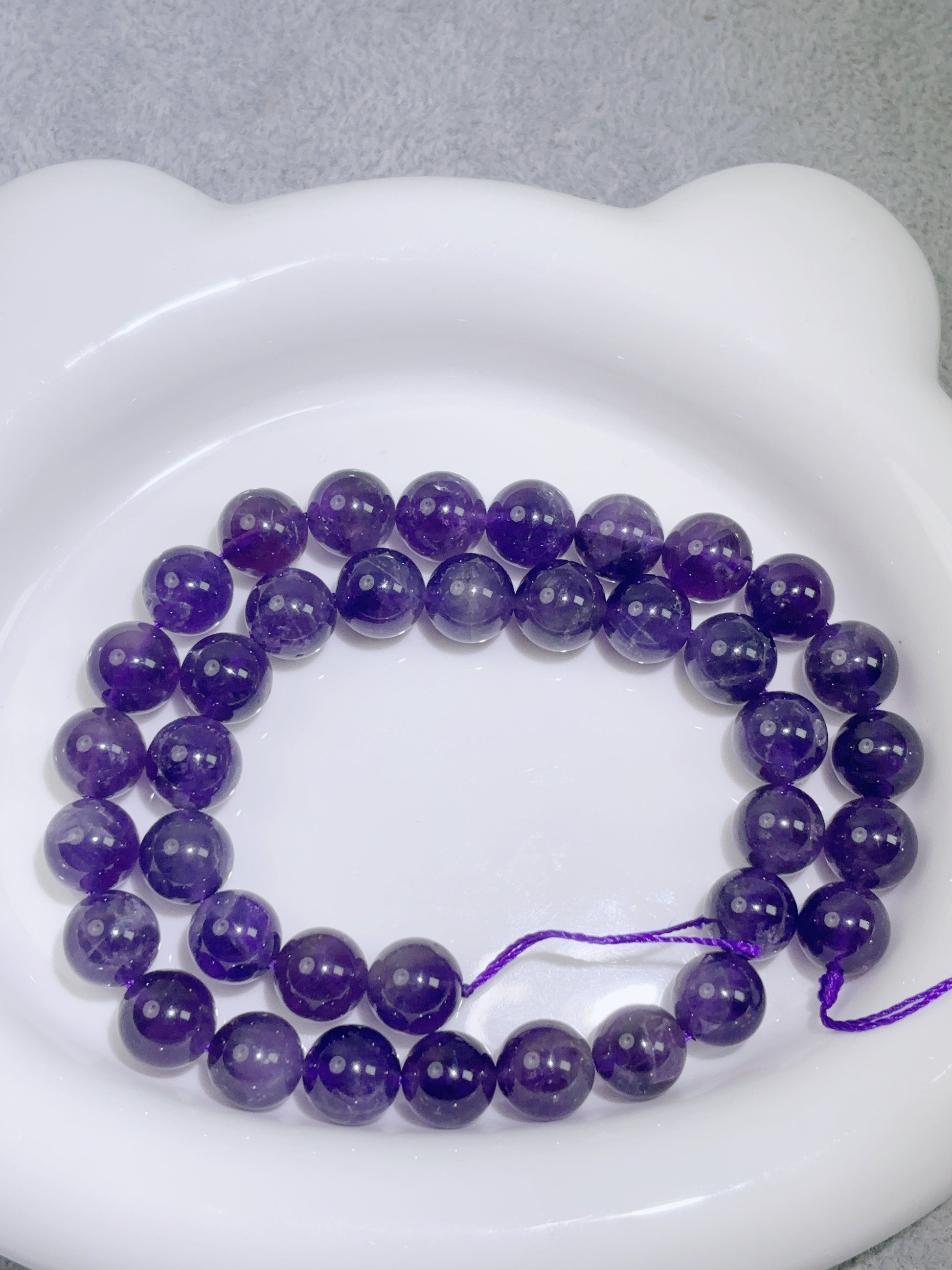 天然石連材--ビーズ-10 mm紫水(少ない綿)