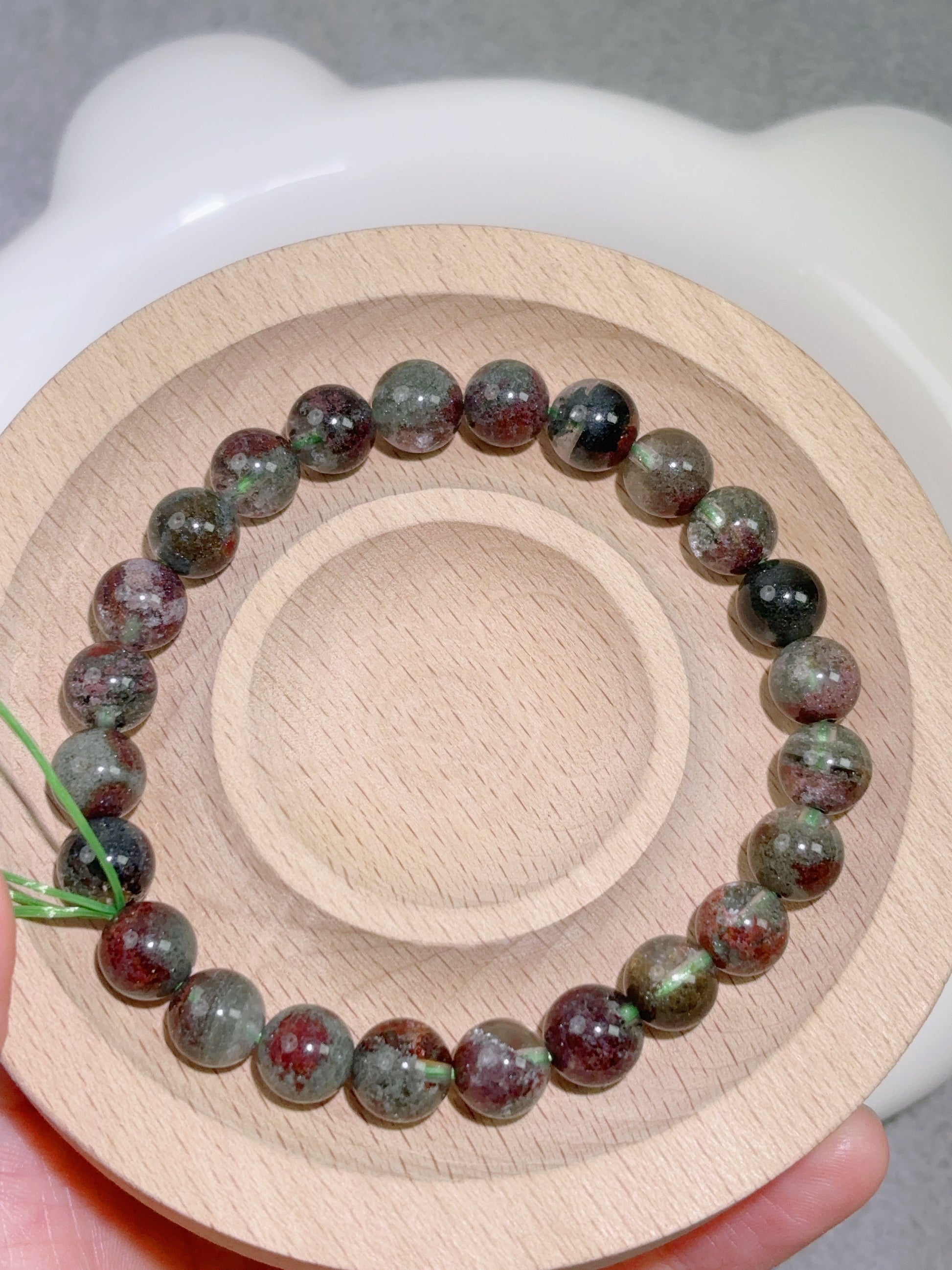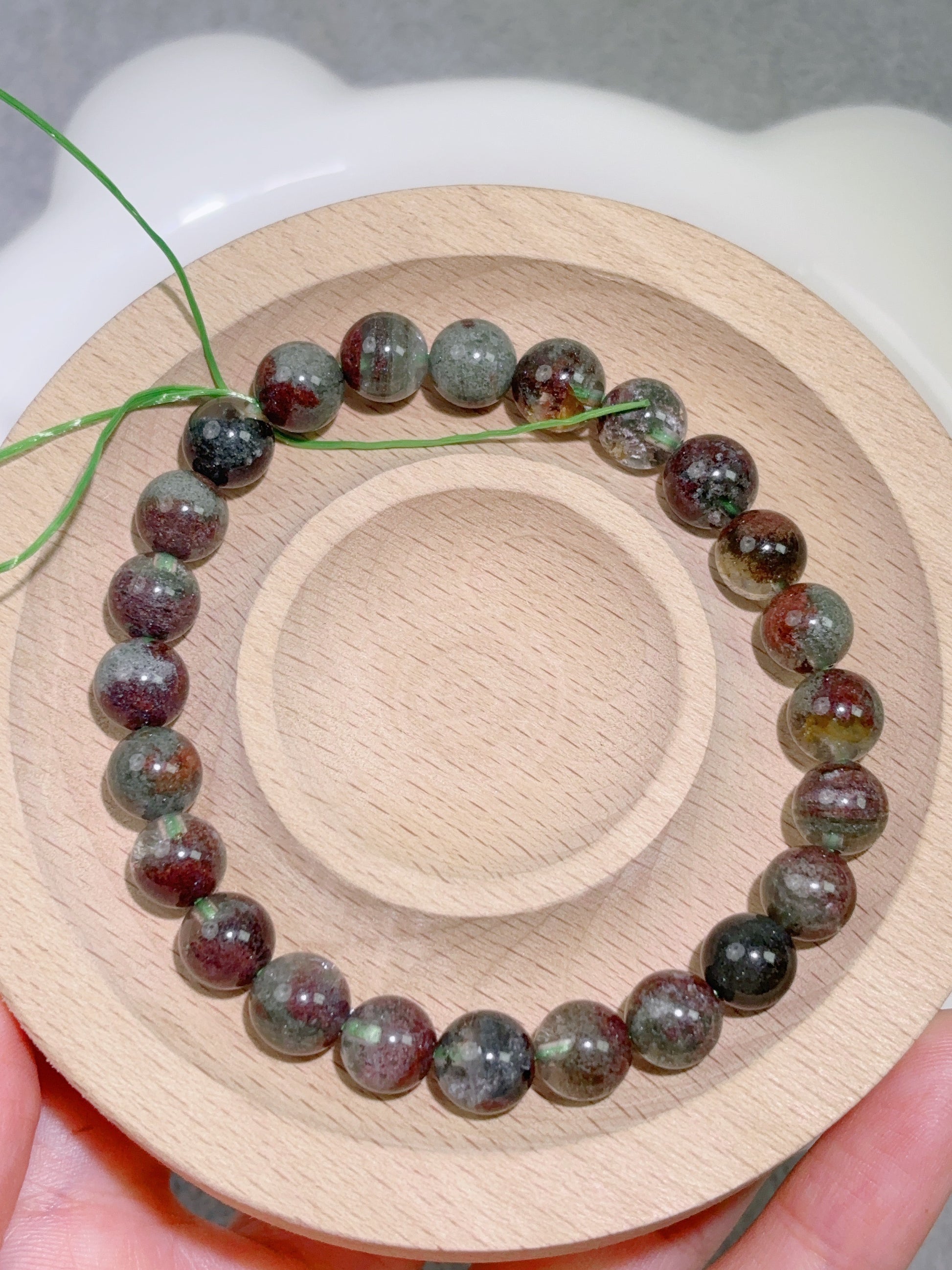 天然石手串シリーズ-ビーズ-8 mm紅緑幽霊/ファントムクォーツ