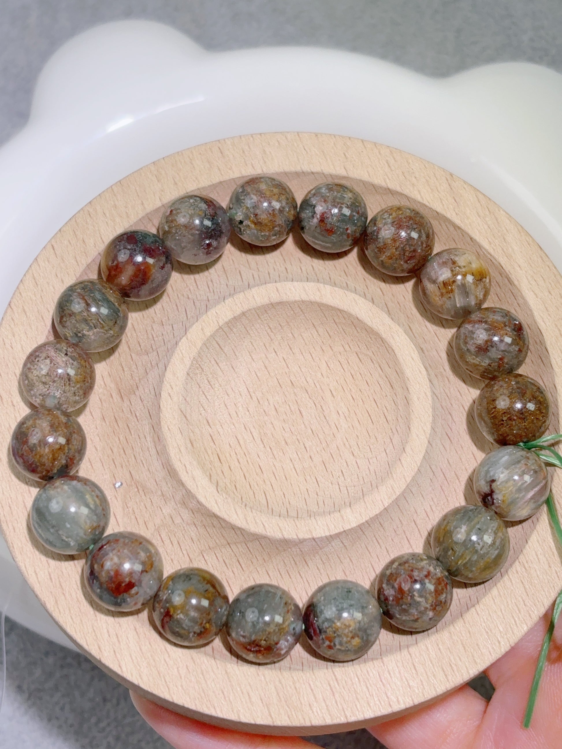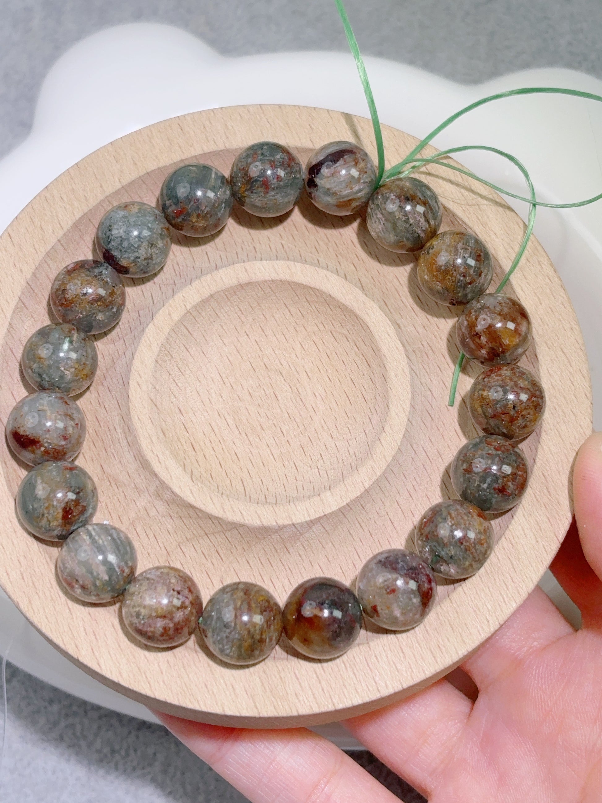 天然石手串シリーズ-円珠-11.1 mm紅緑幽霊