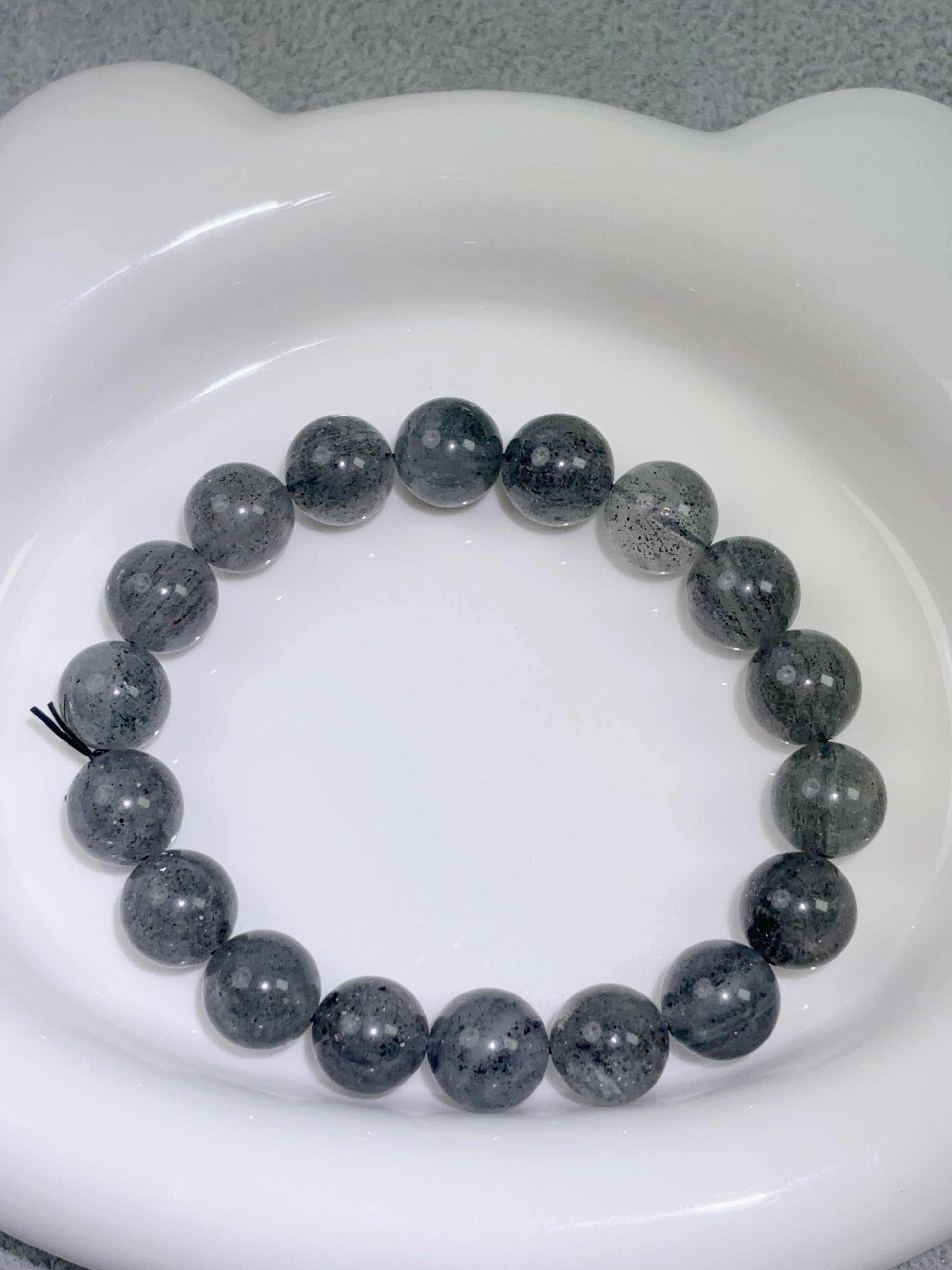 天然石手串シリーズ-円珠-11.7 mm黒イチゴ水晶/黒ストロベリークォーツ