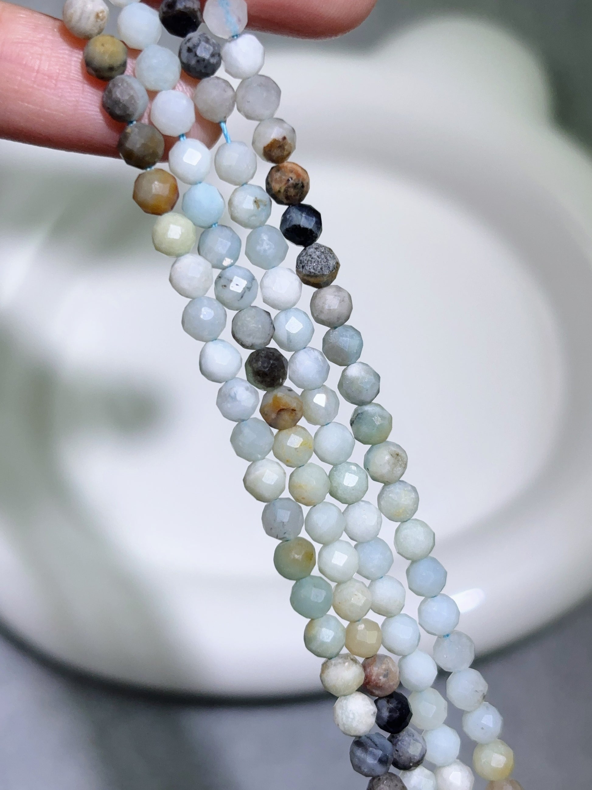 天然石连材-多面-4mmアマゾナイトグ(ラデーション)