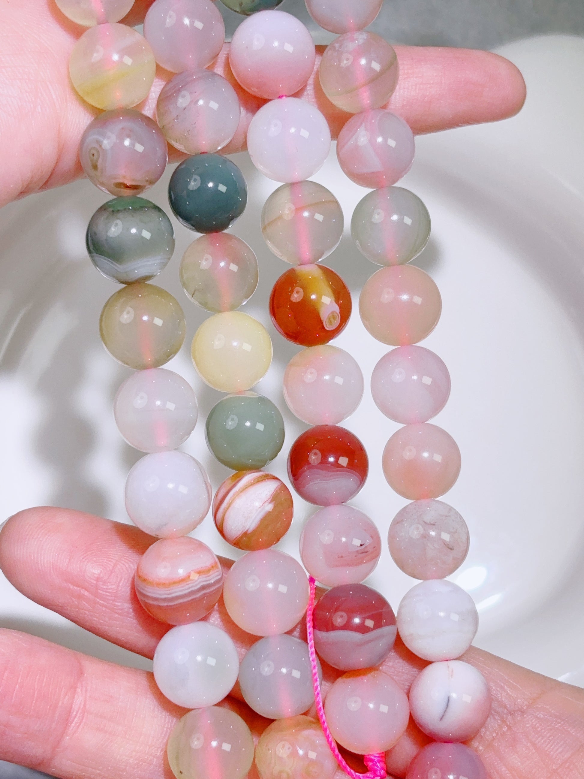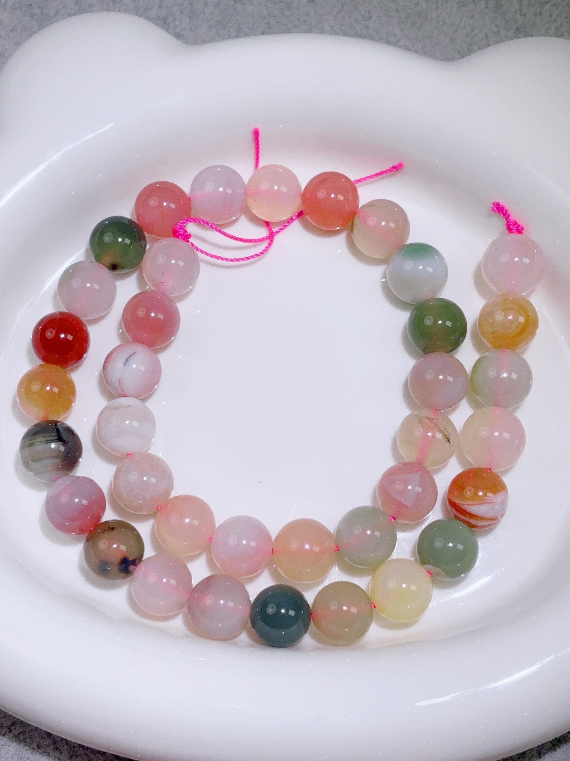 天然石連材-ビーズ-10 mm塩源瑪瑙