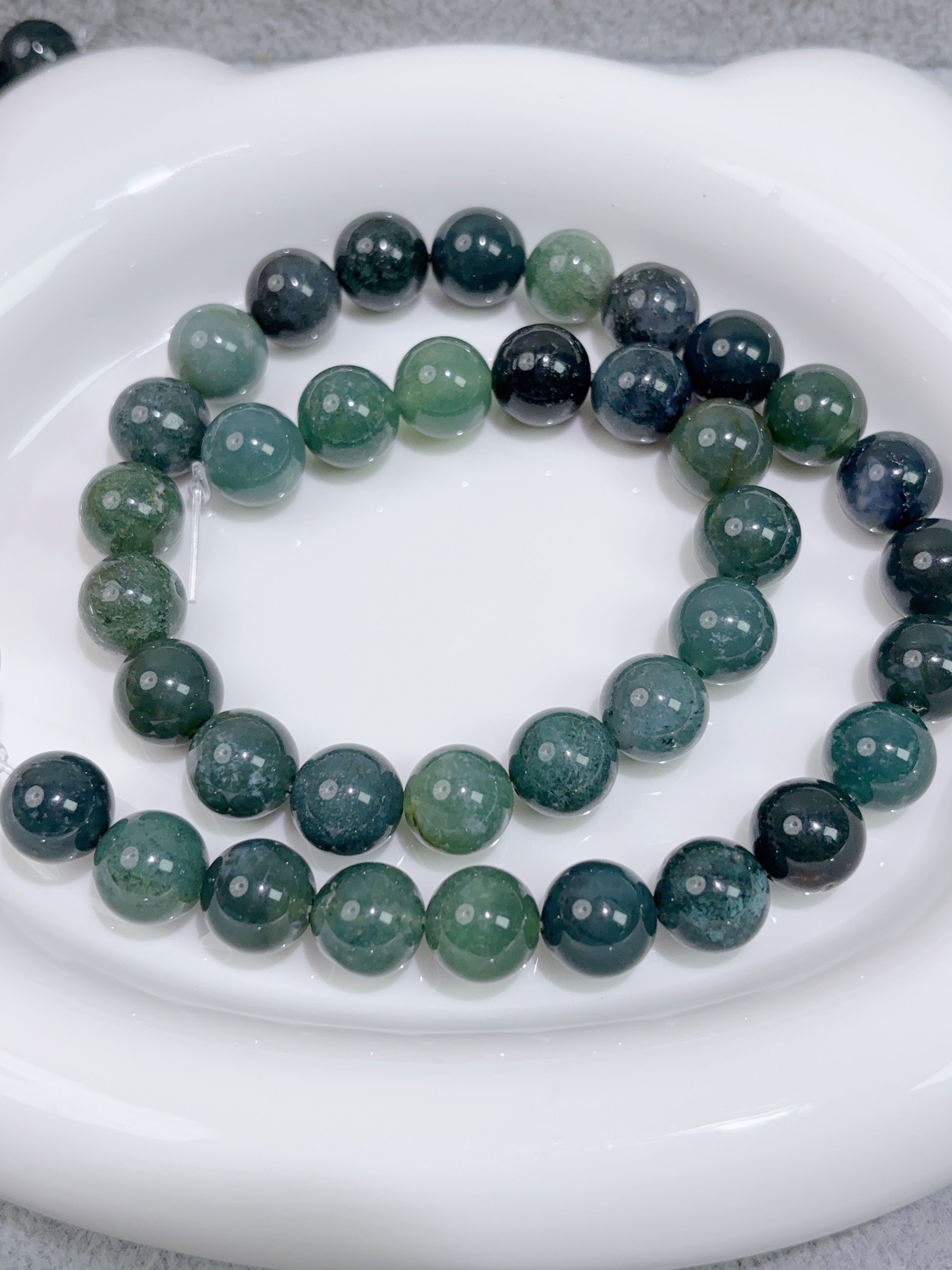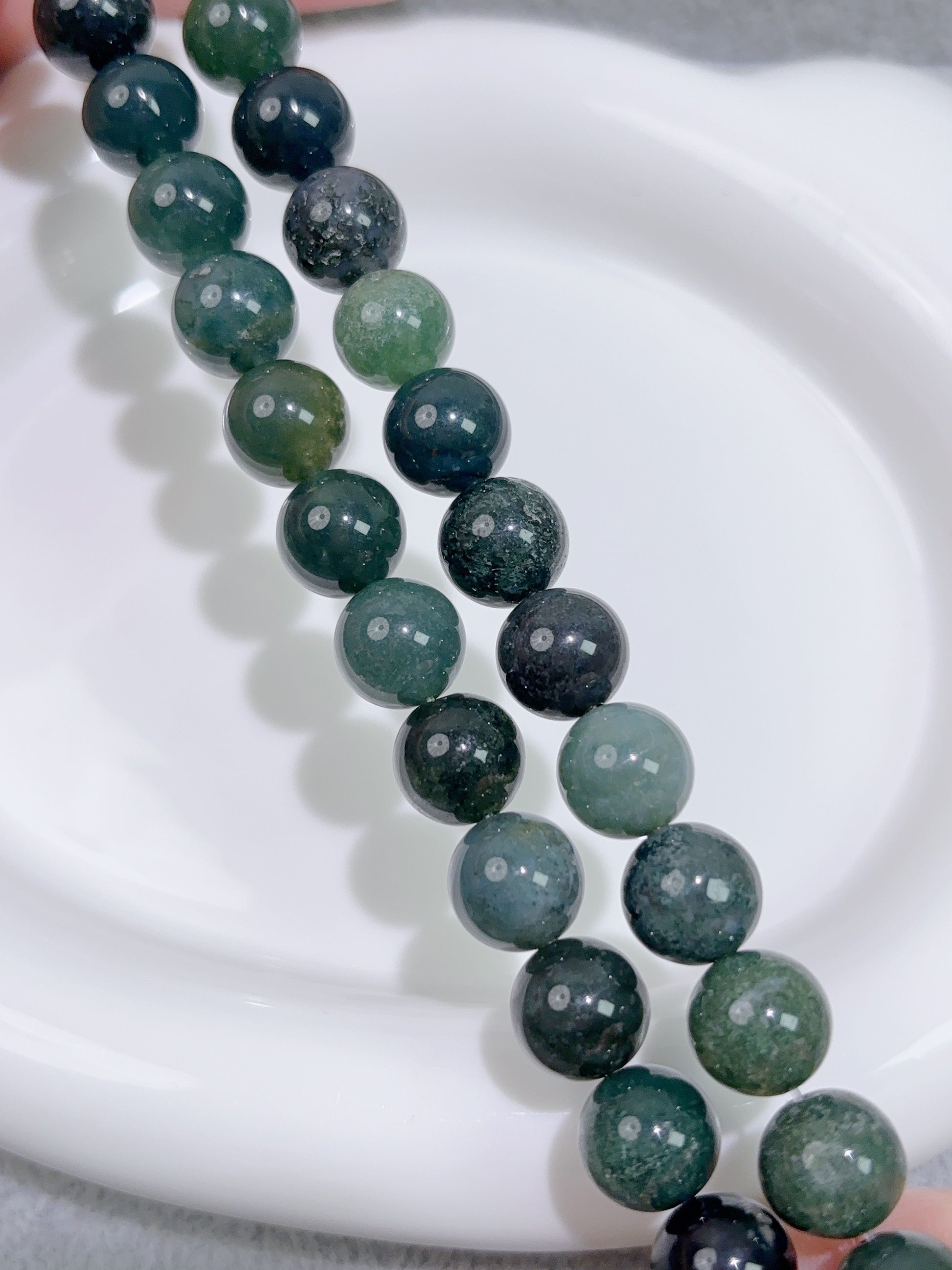 天然石連材-ビーズ-10 mm水草瑪瑙/moss agate