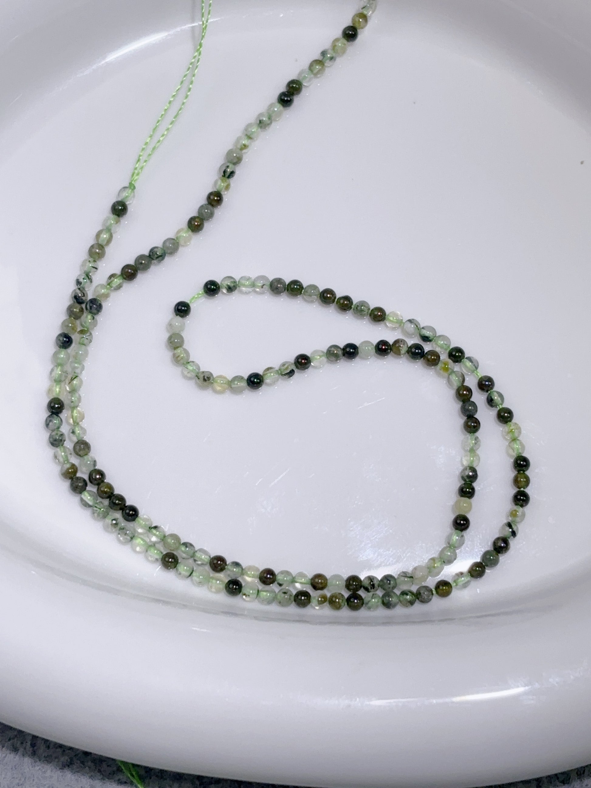 天然石連材-ビーズ-2 mmプレナイト/ぶどう石
