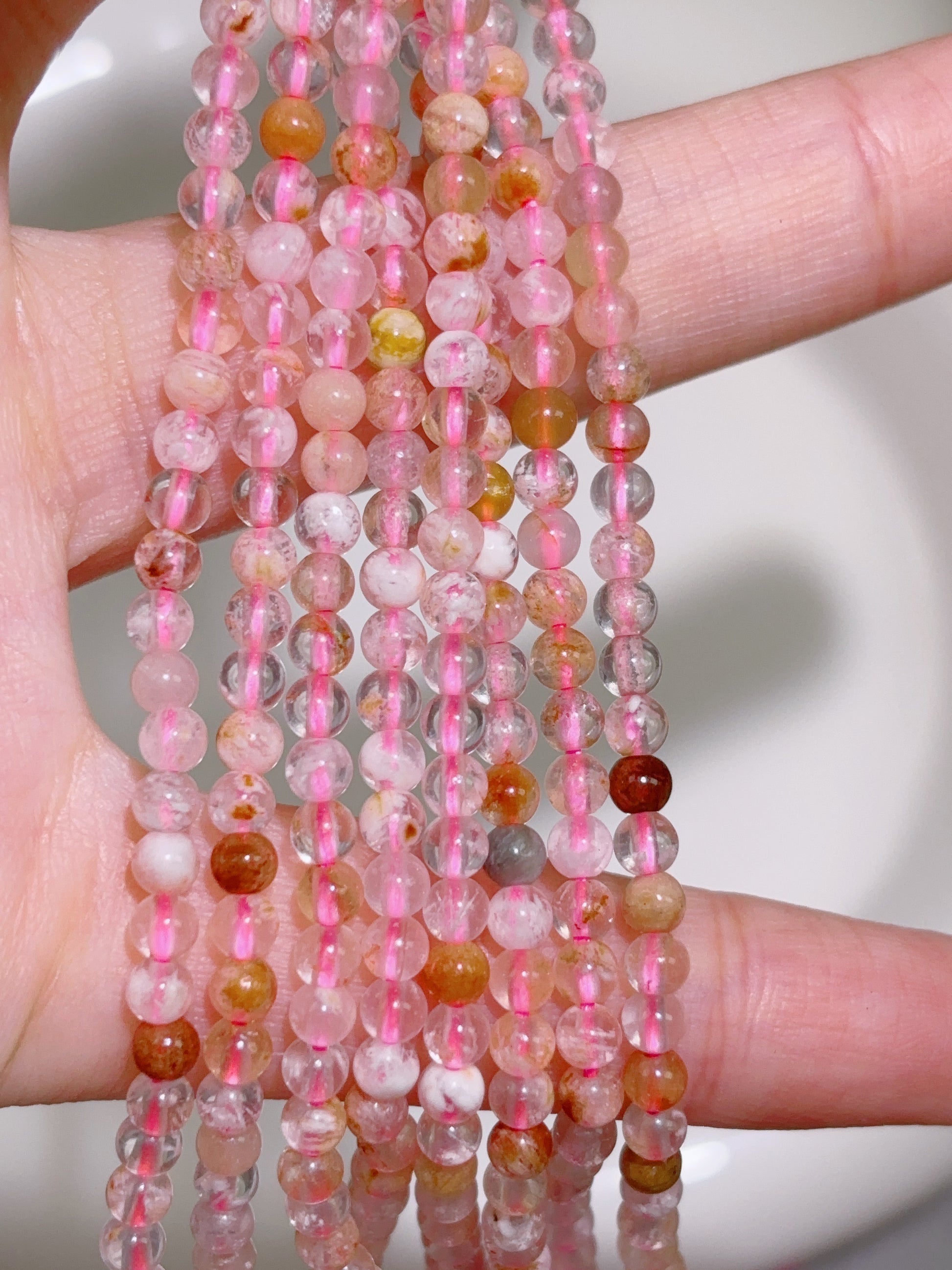 天然石連材-ビーズ-3 mm桜瑪瑙