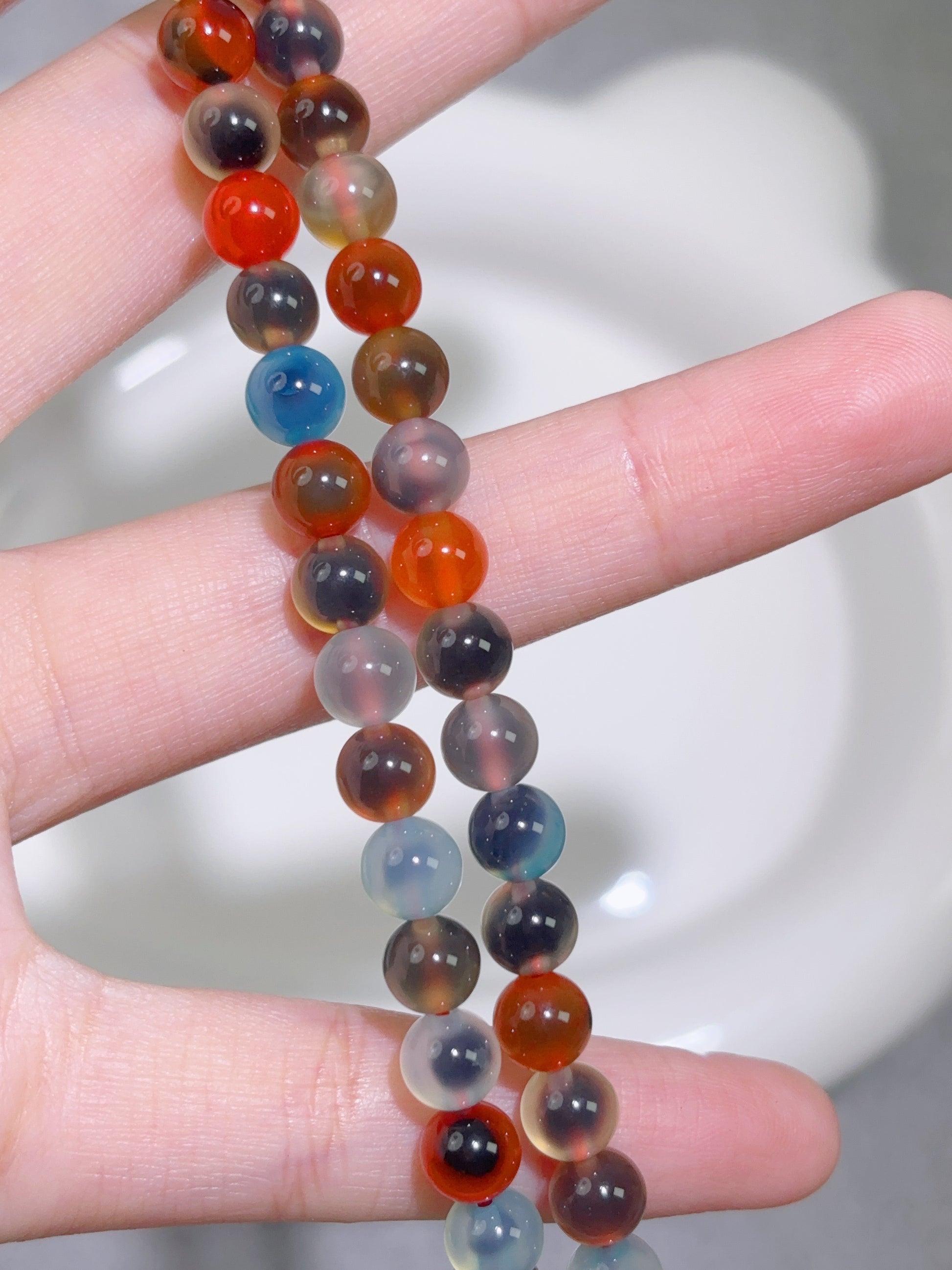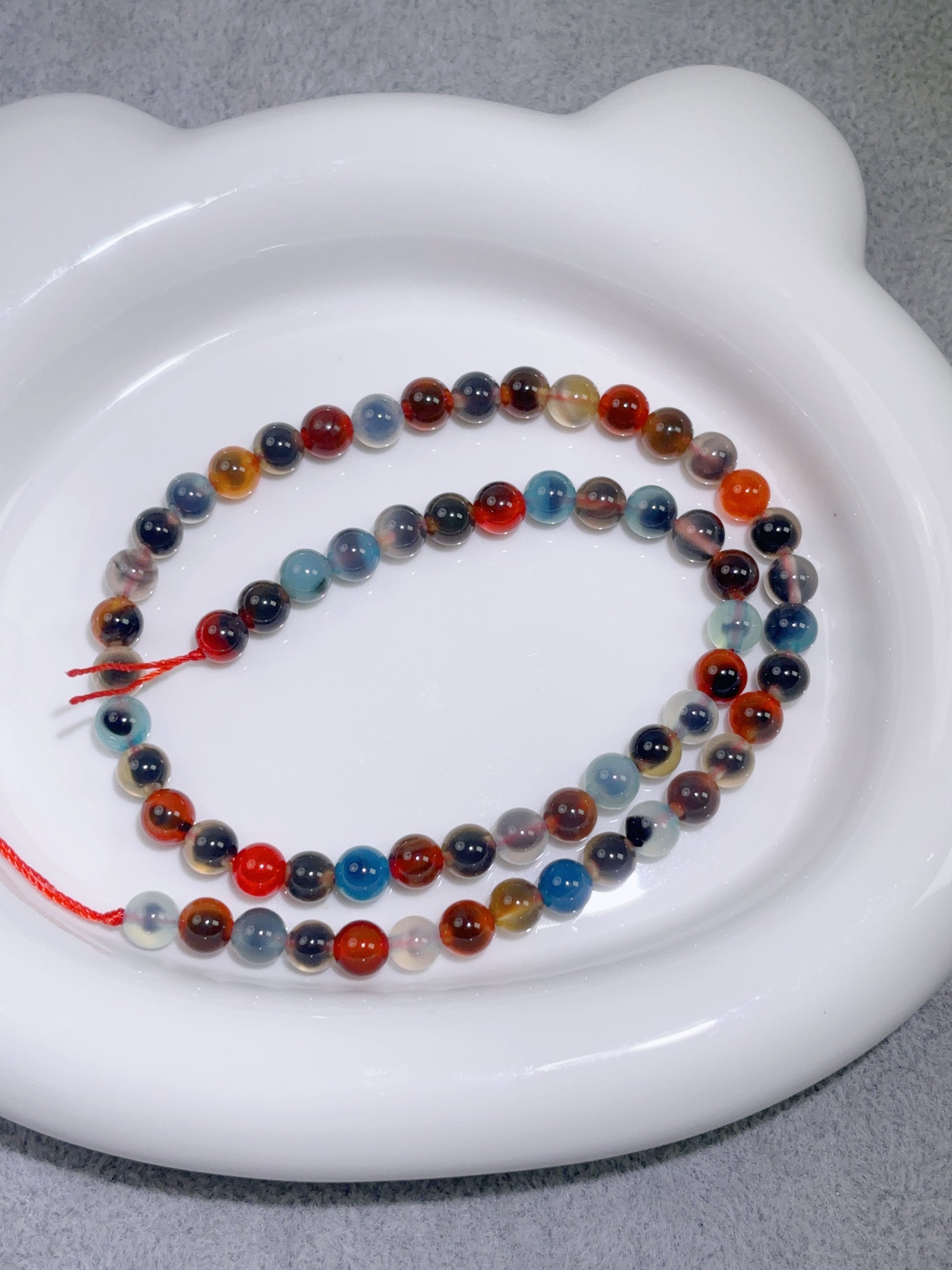 天然石連材-ビーズ-6 mmカラー糖心瑪瑙(トウシンメノウ)
