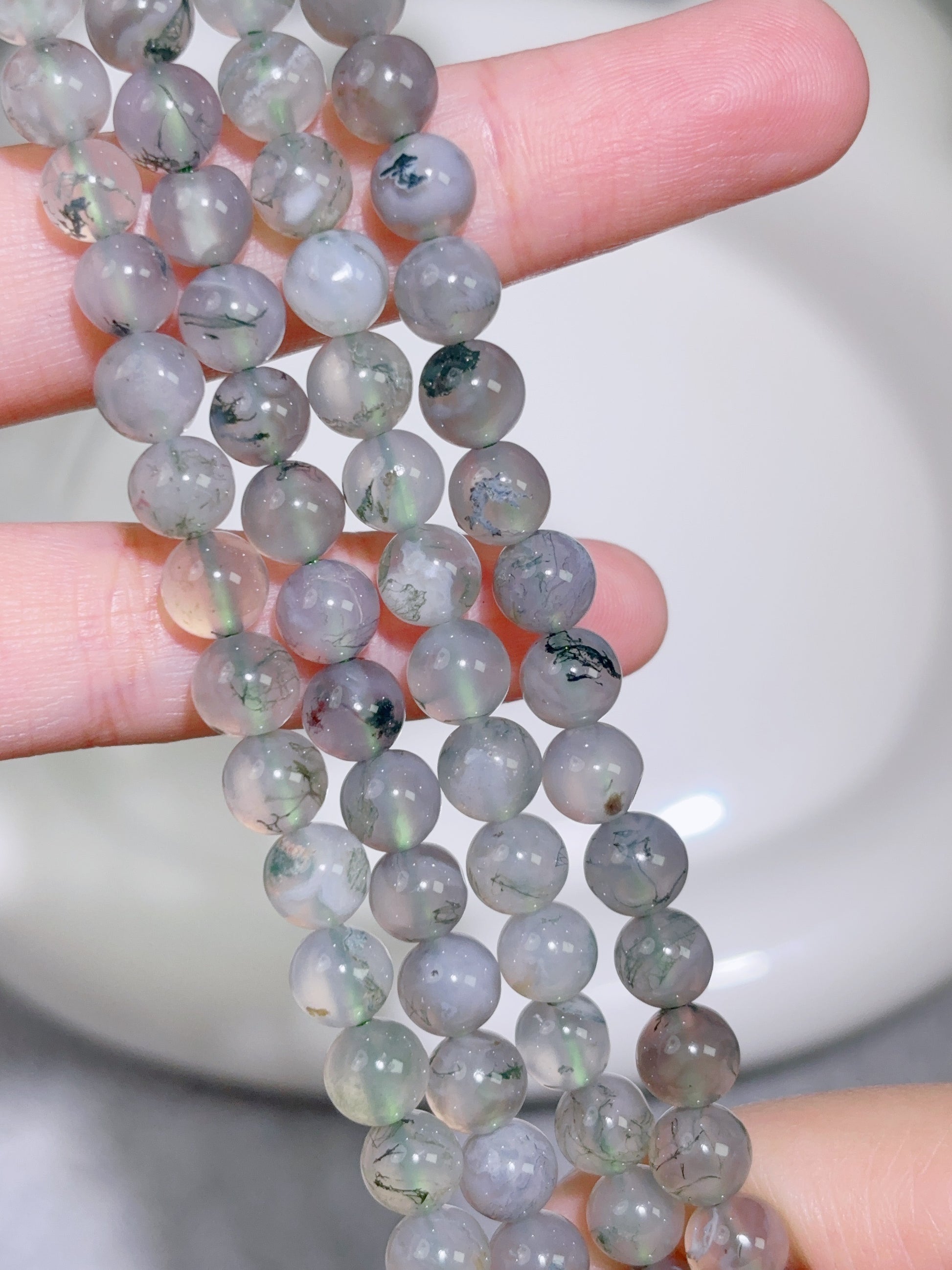 天然石連材-ビーズ-6 mm水草瑪瑙