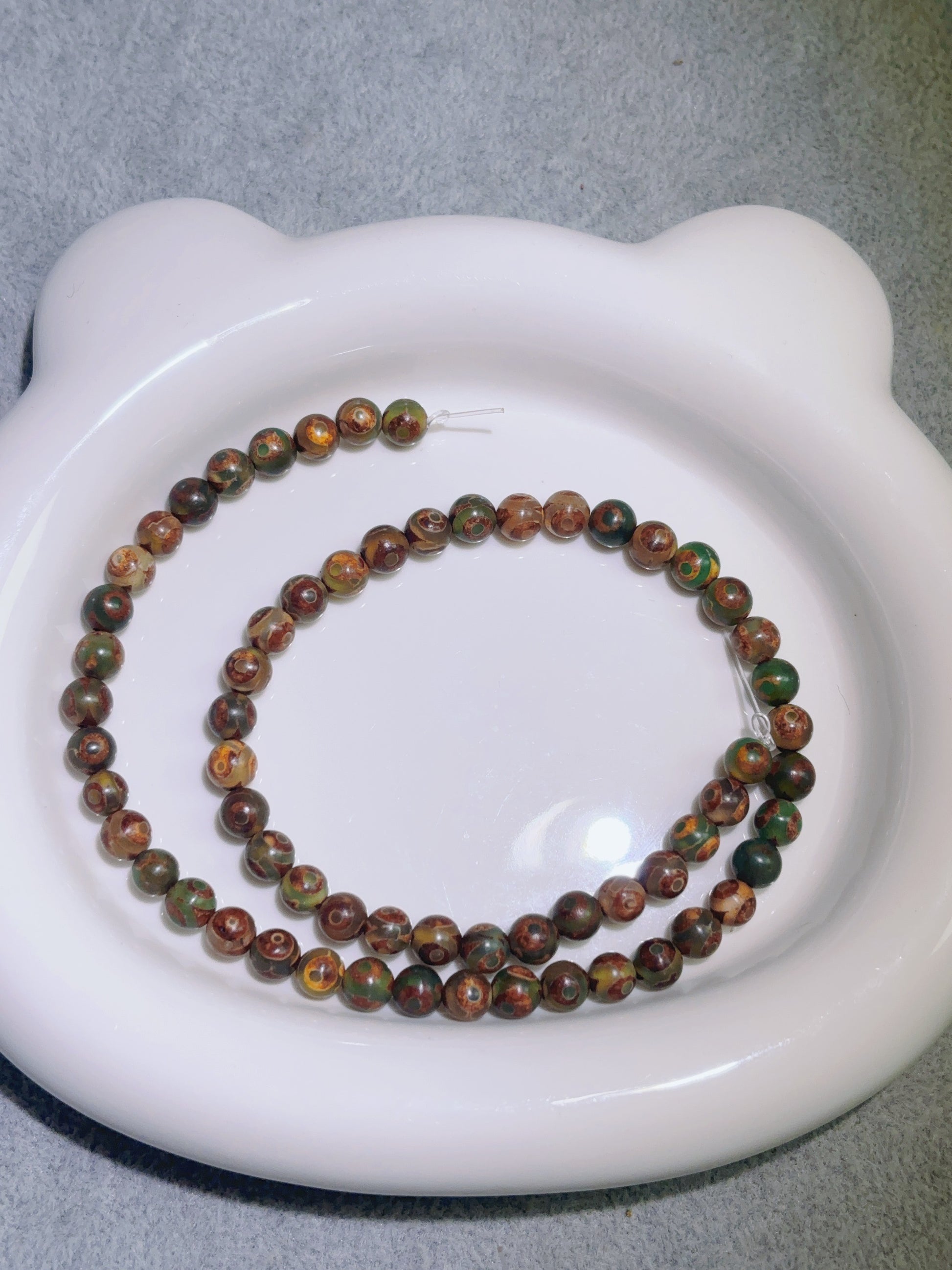 天然石連材-ビーズ-6 mm茶緑瑪瑙