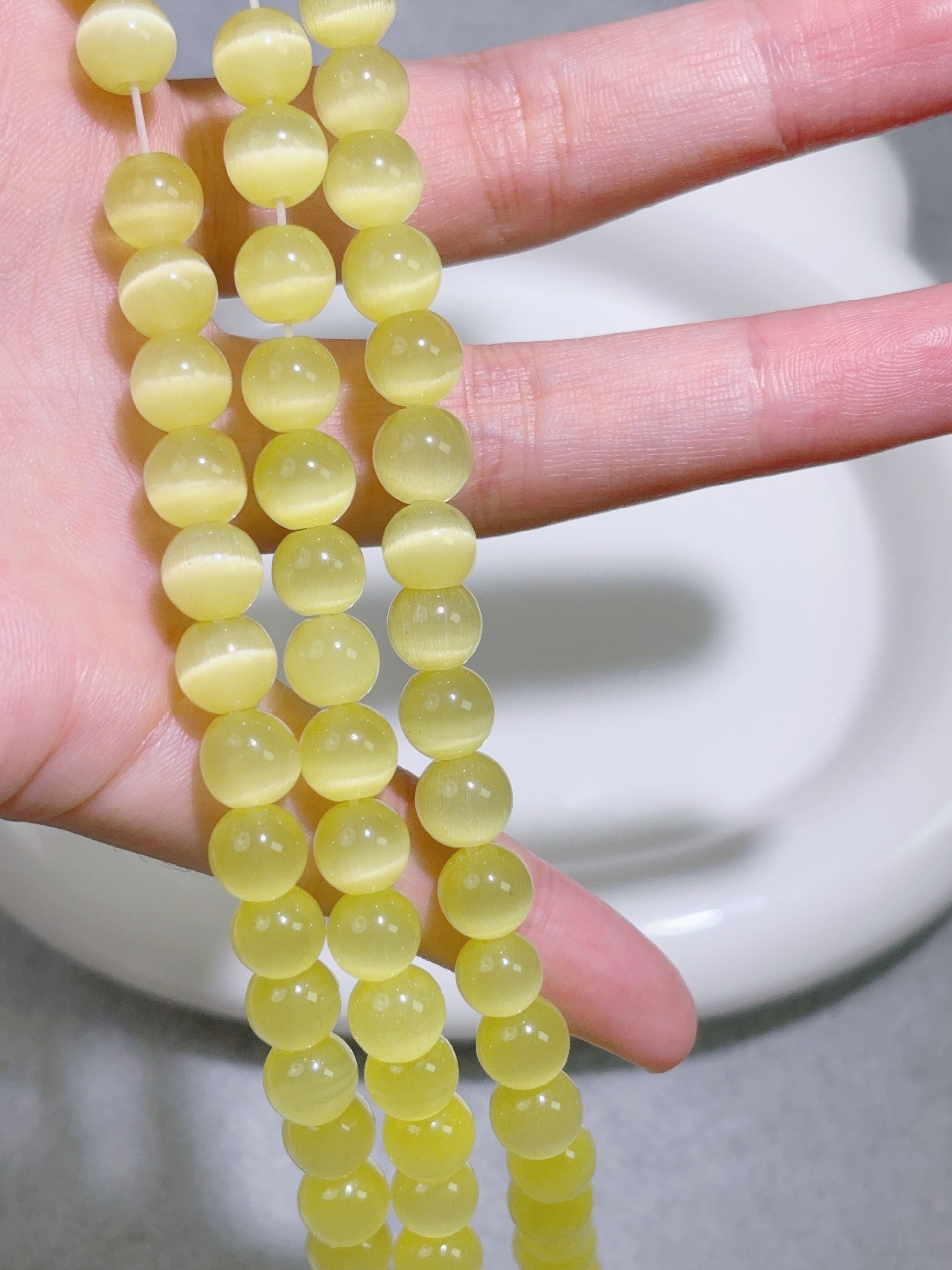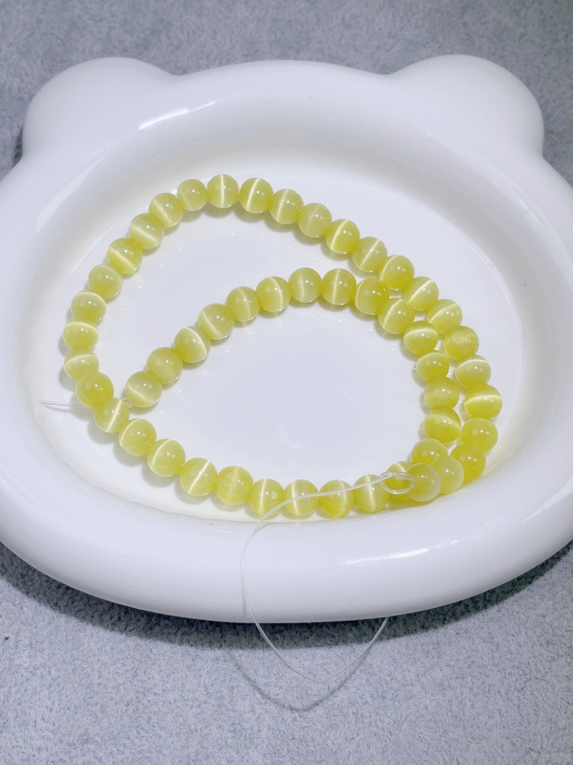 天然石連材-ビーズ-8 mmイエローキャッツアイ