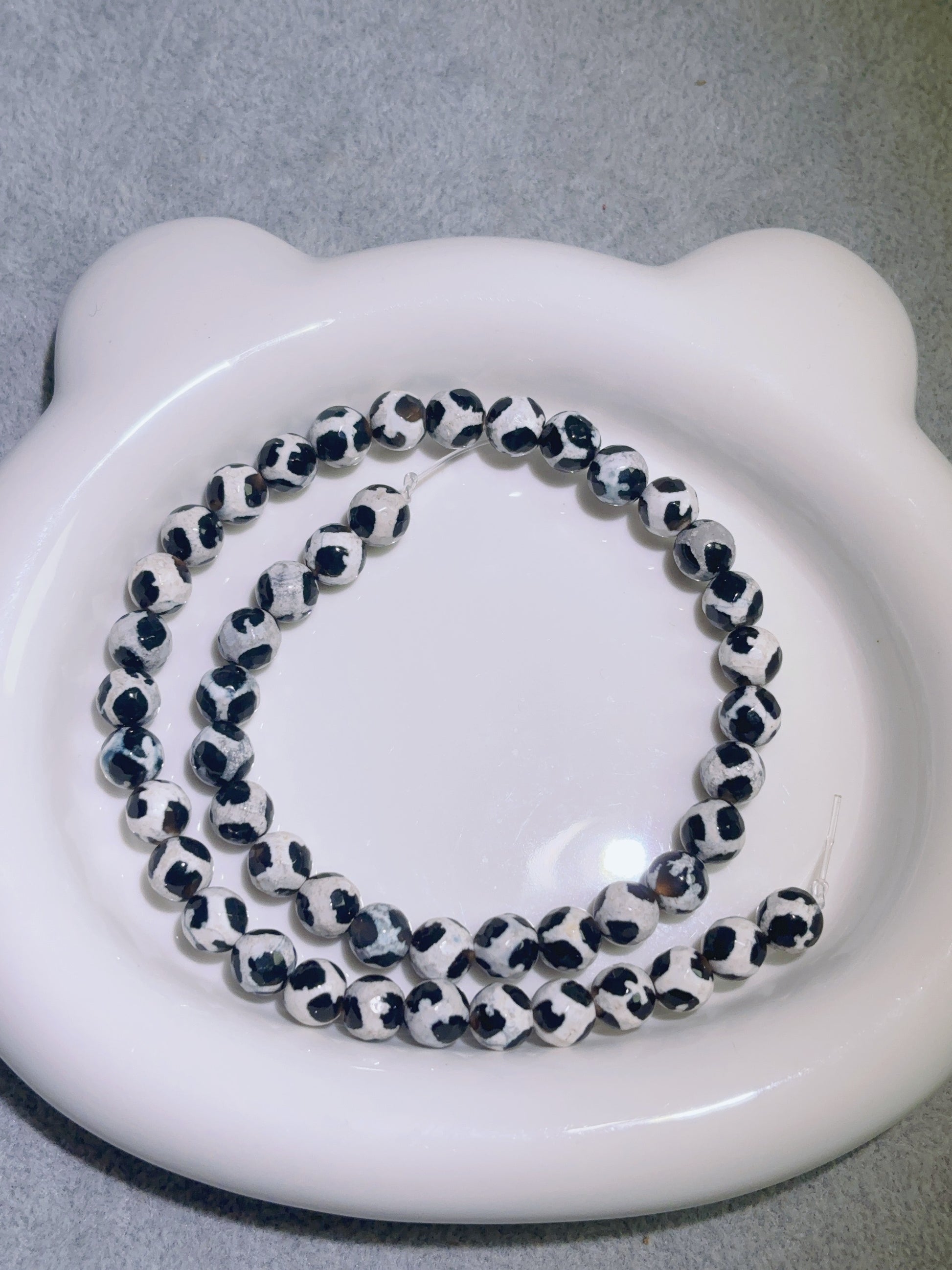 天然石連材-ビーズ-8 mm白黒メノウ