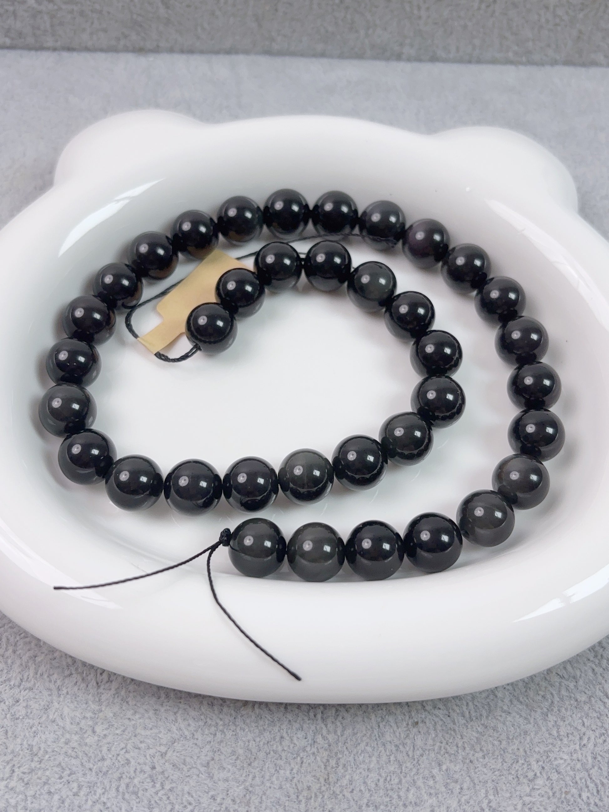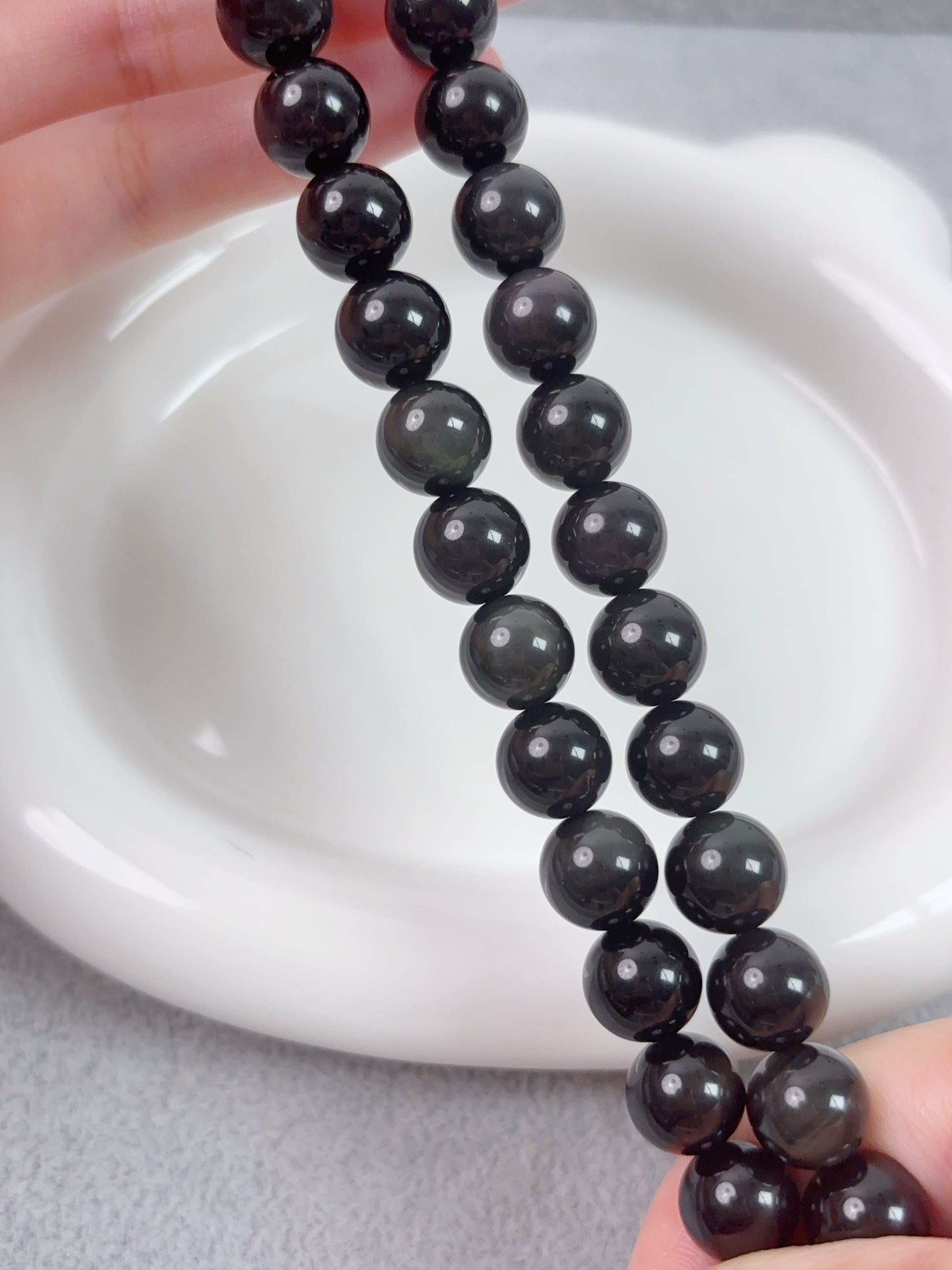 天然石連材--円珠--10 mm虹黒曜石