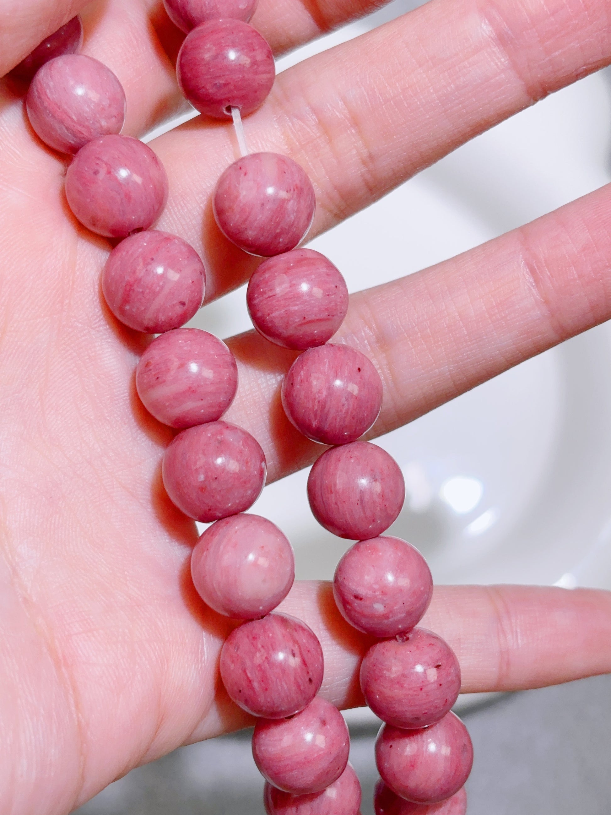 天然石連材-円珠-10 mm赤紋石/ロードクロサイト