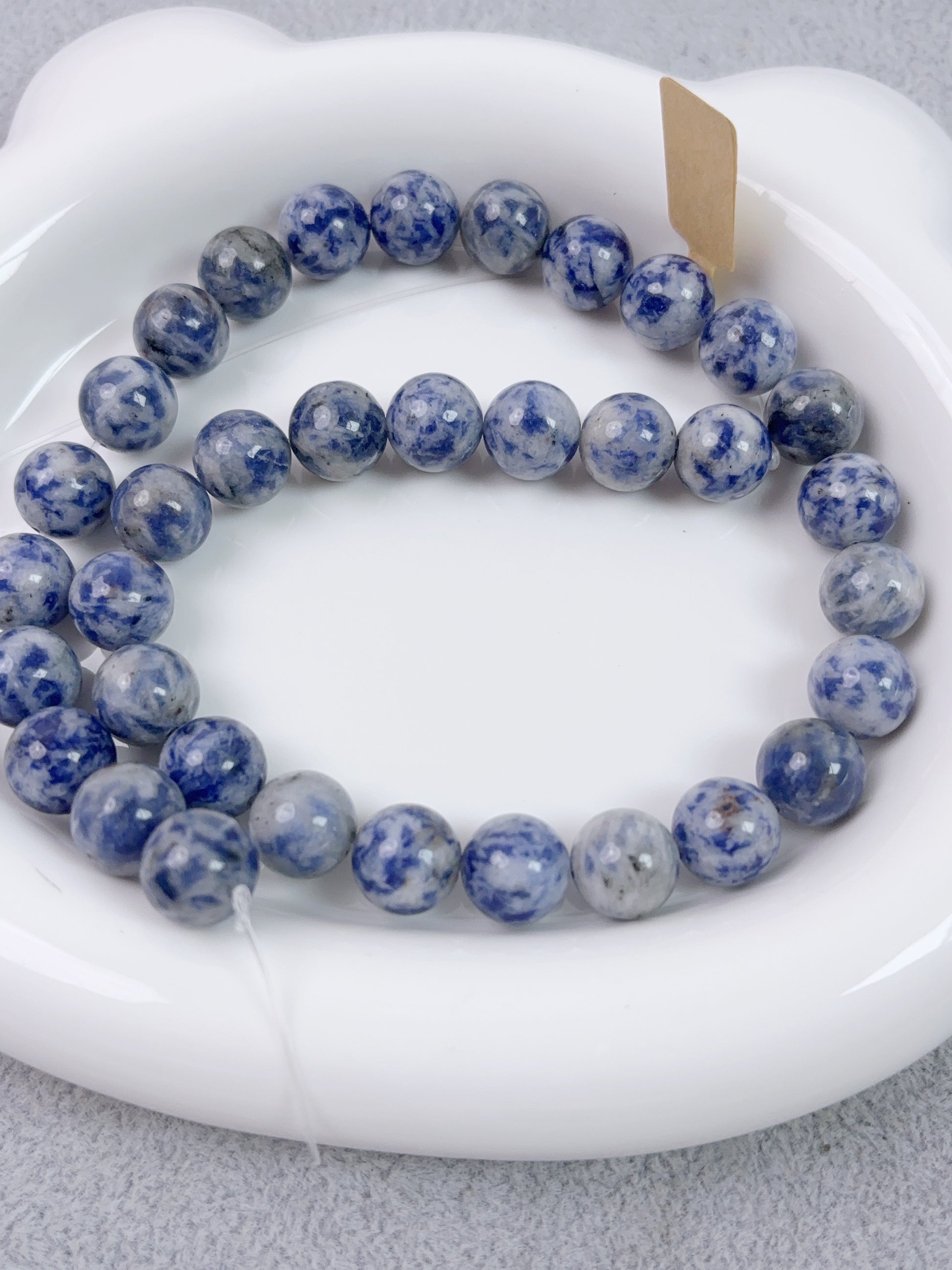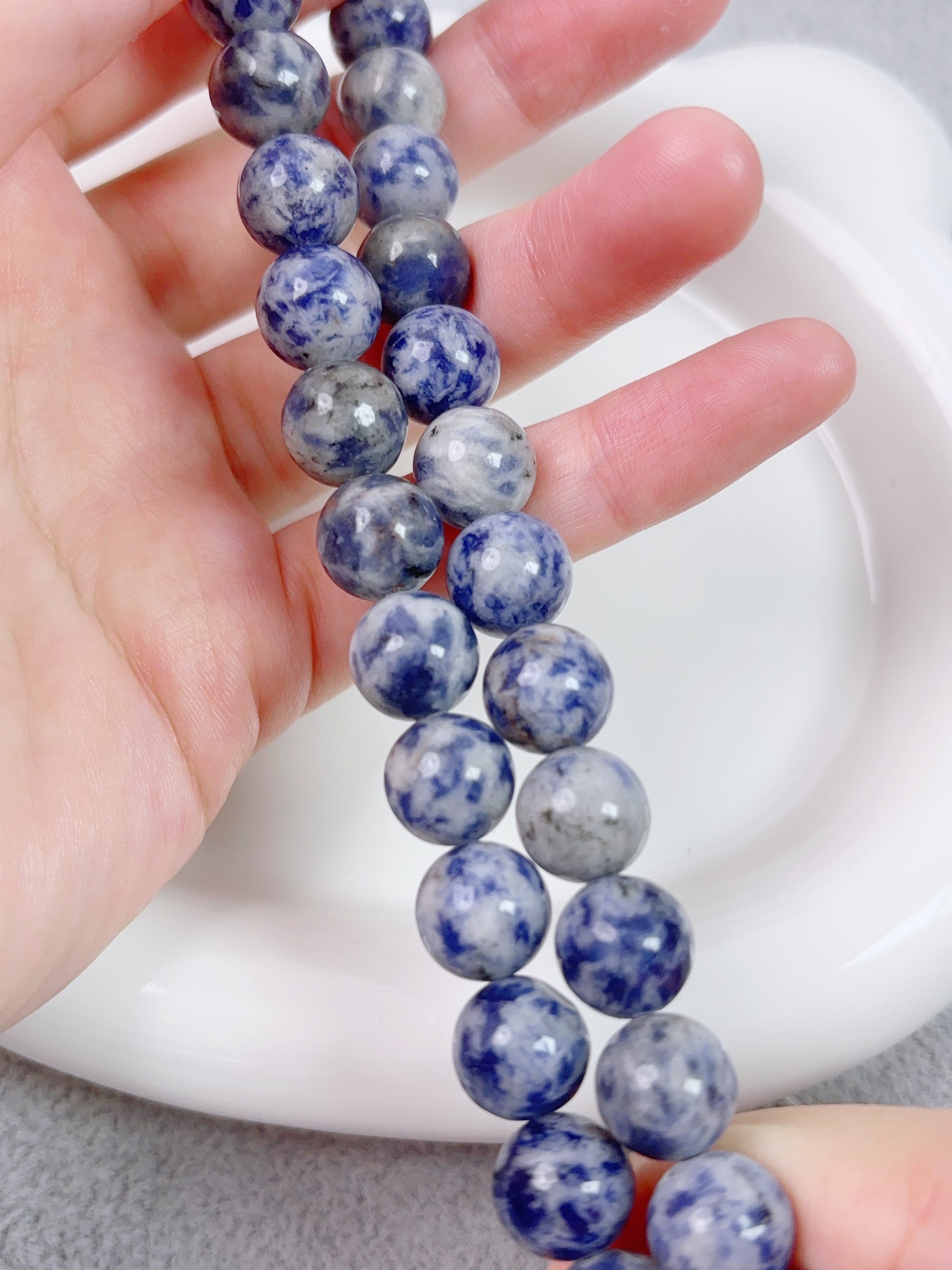 天然石連材--円珠--10 mm青点石