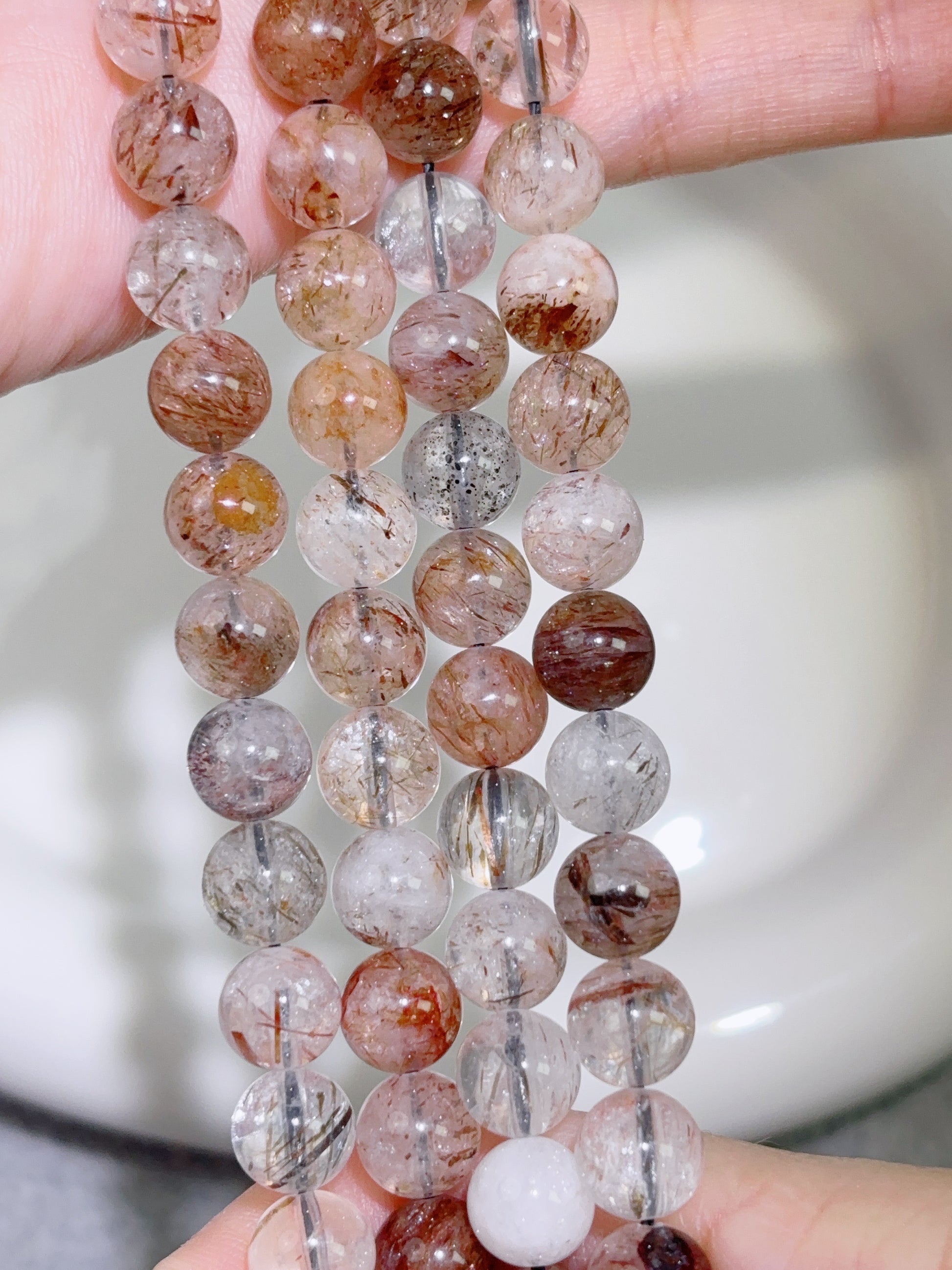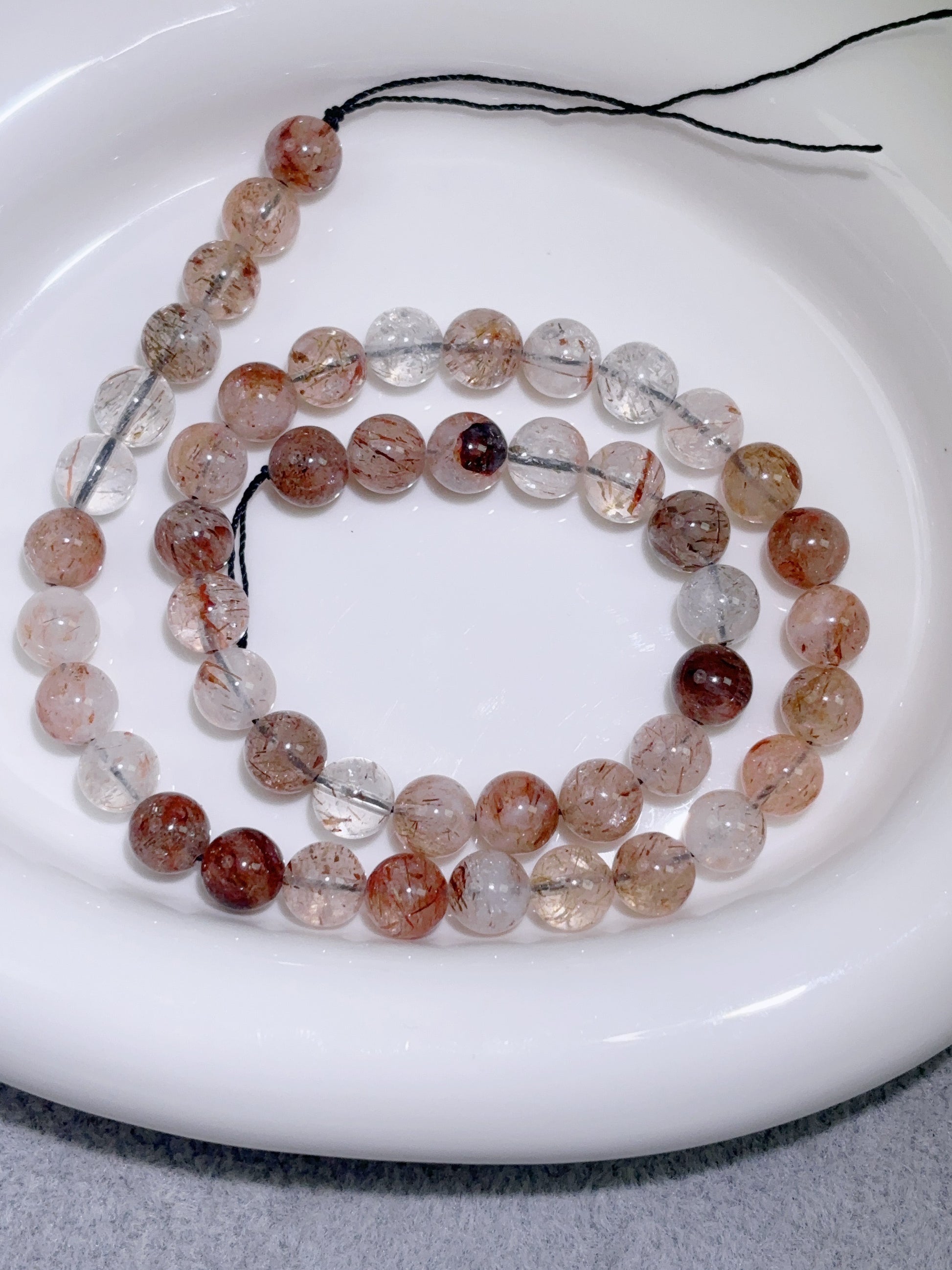 天然石連材-円珠-8 mm黒金超七/ブラックゴールドスーパーセブン