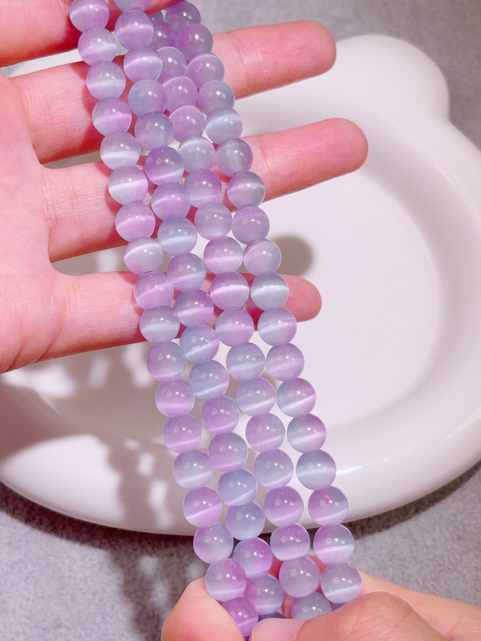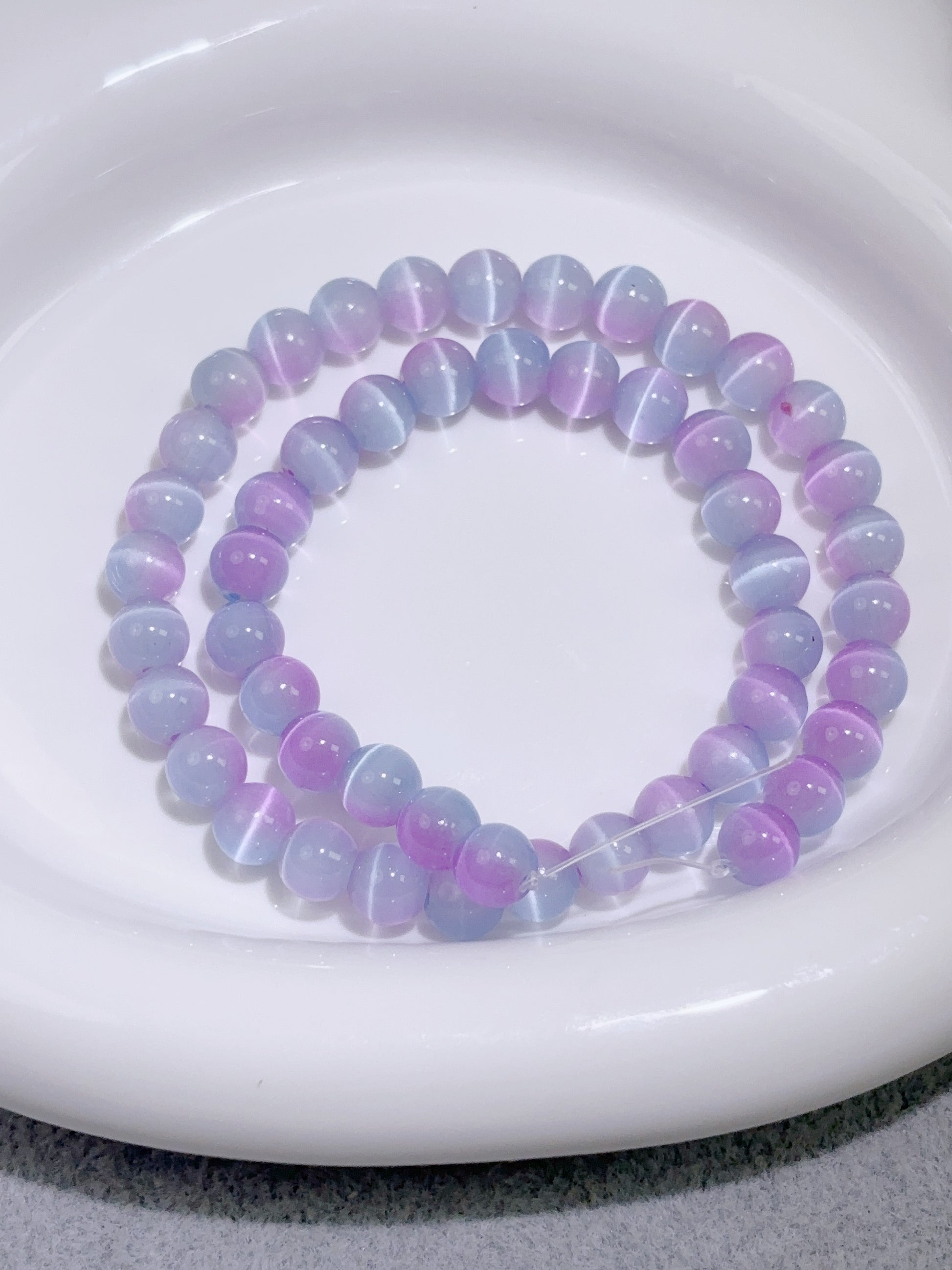 天然石連材-玉-8 mm青紫キャッツアイ