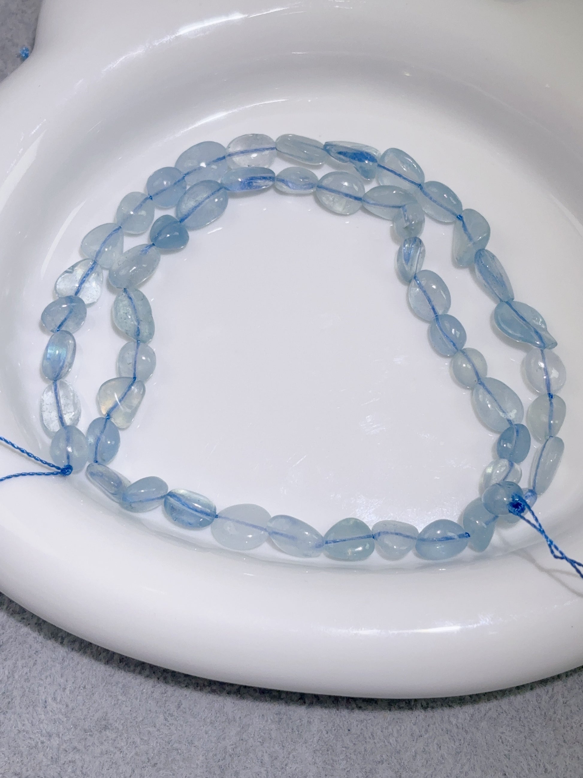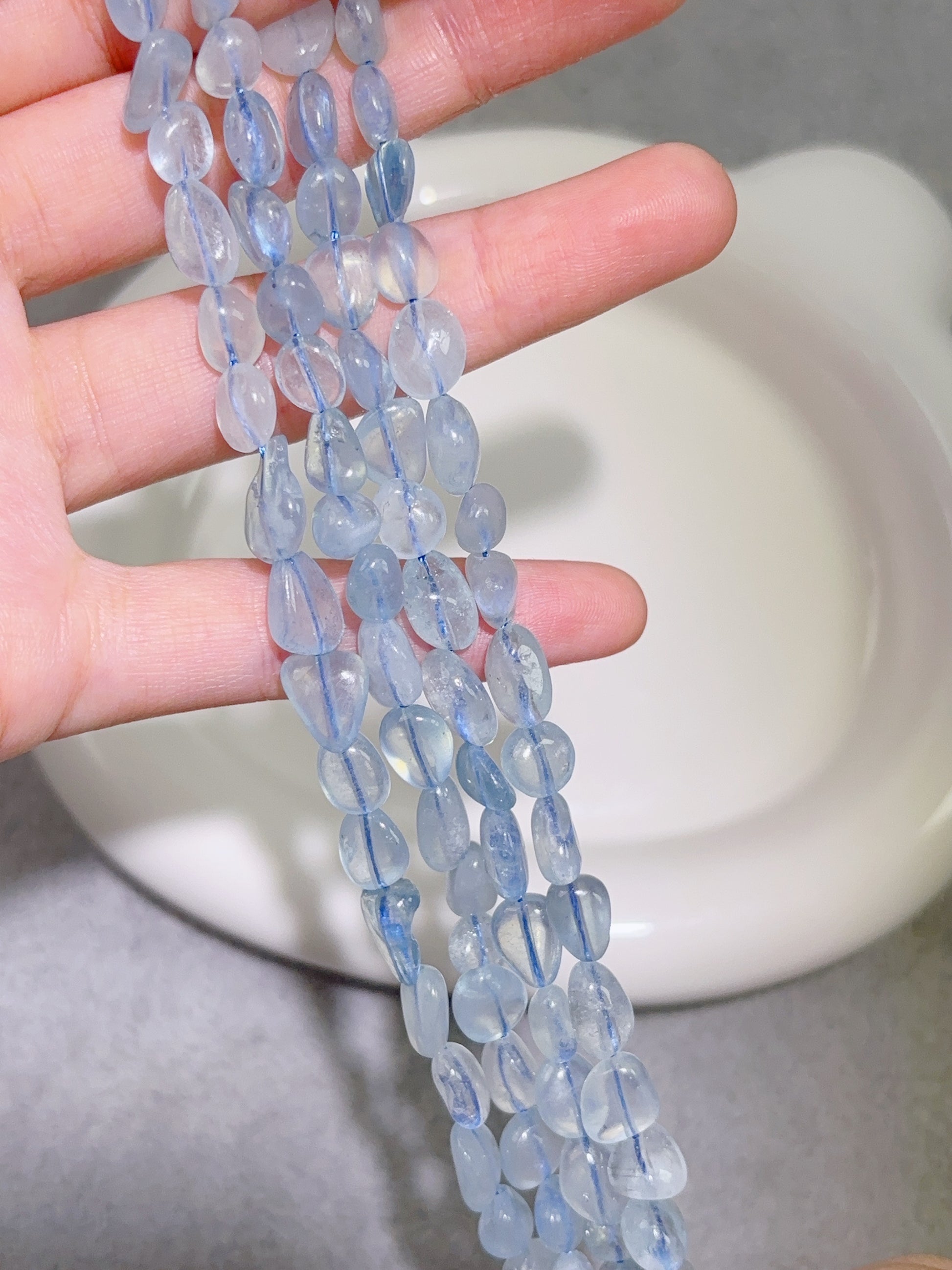 天然石連材-糖豆-7-9 mmアクアマリン 高透明性