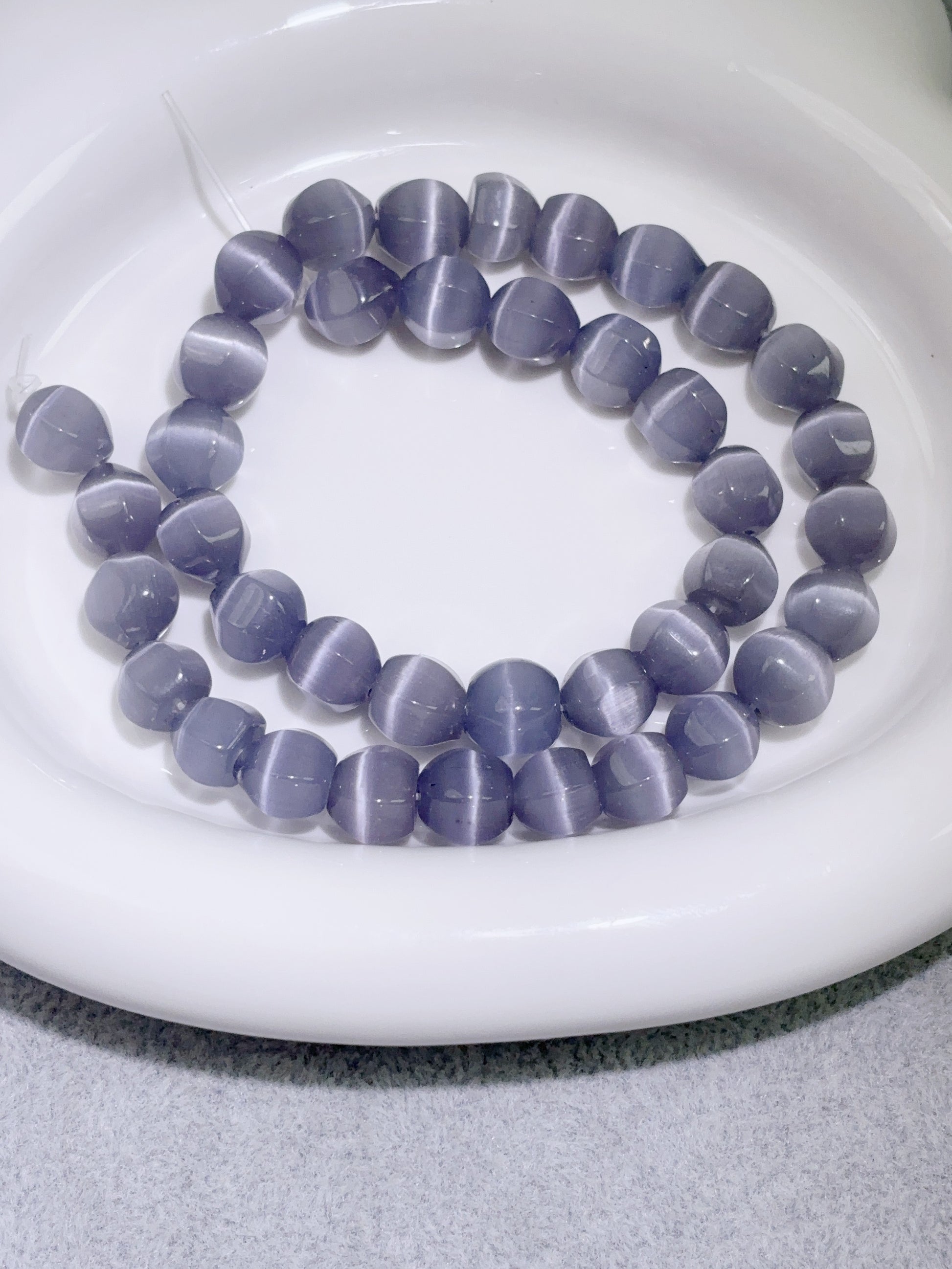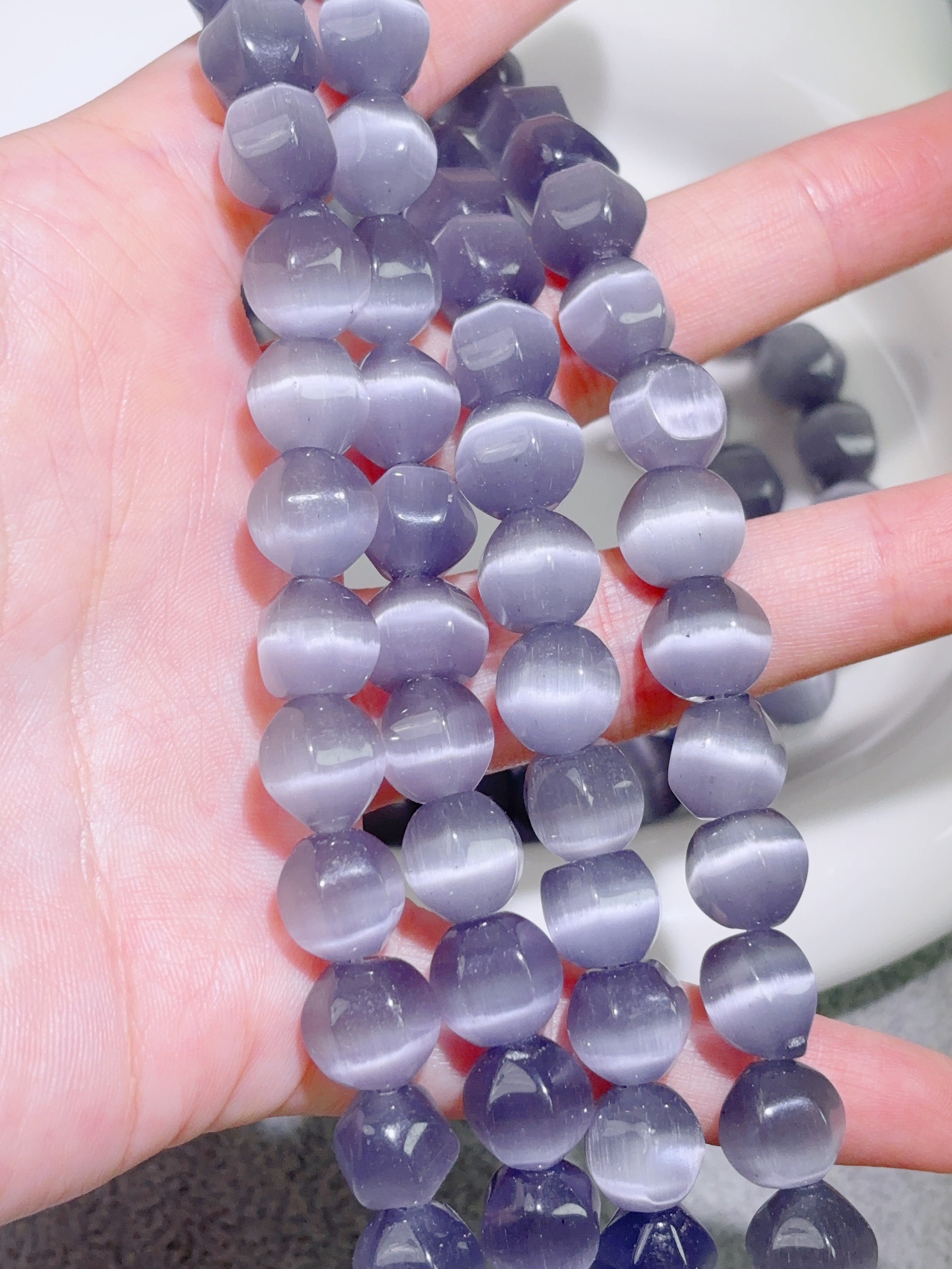 天然石連材-随形珠-10 mm浅紫ローランドキャッツアイ石