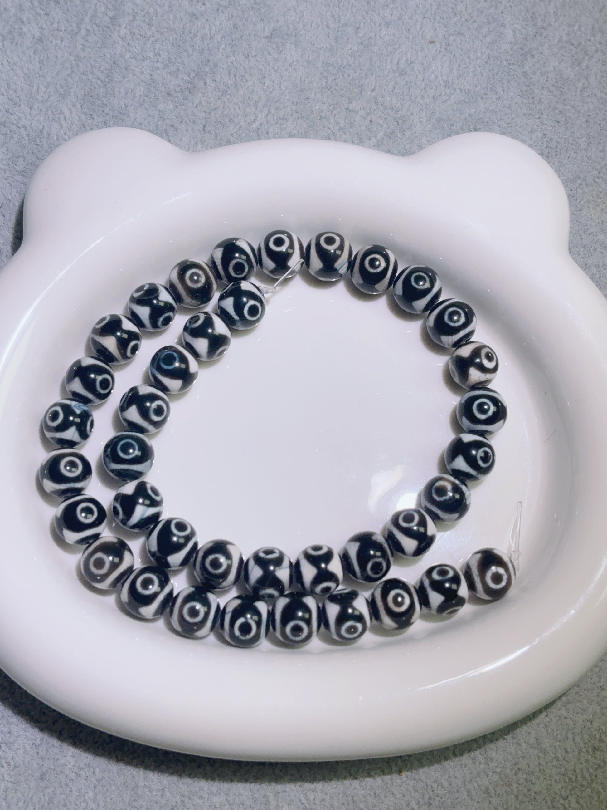 然石連材-ビーズ-10 mm白黒天眼瑪瑙