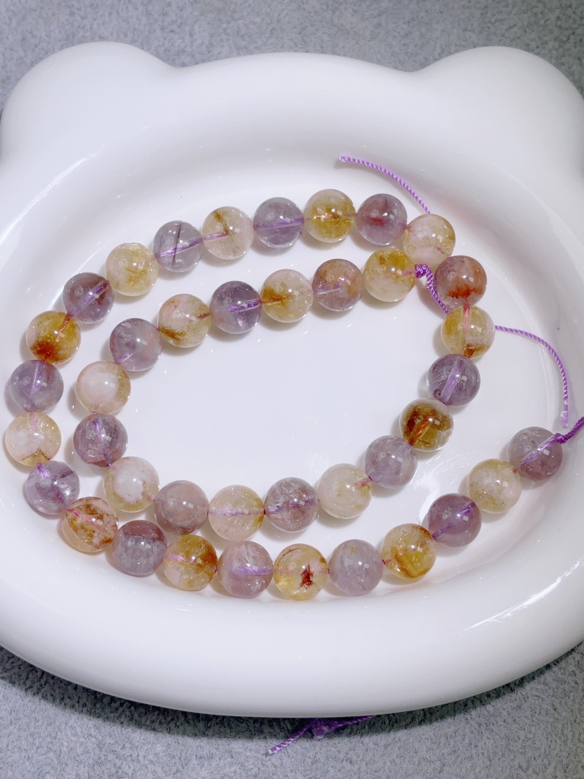 天然石連材-ビーズ-10 mm紫鈦晶/Citrine