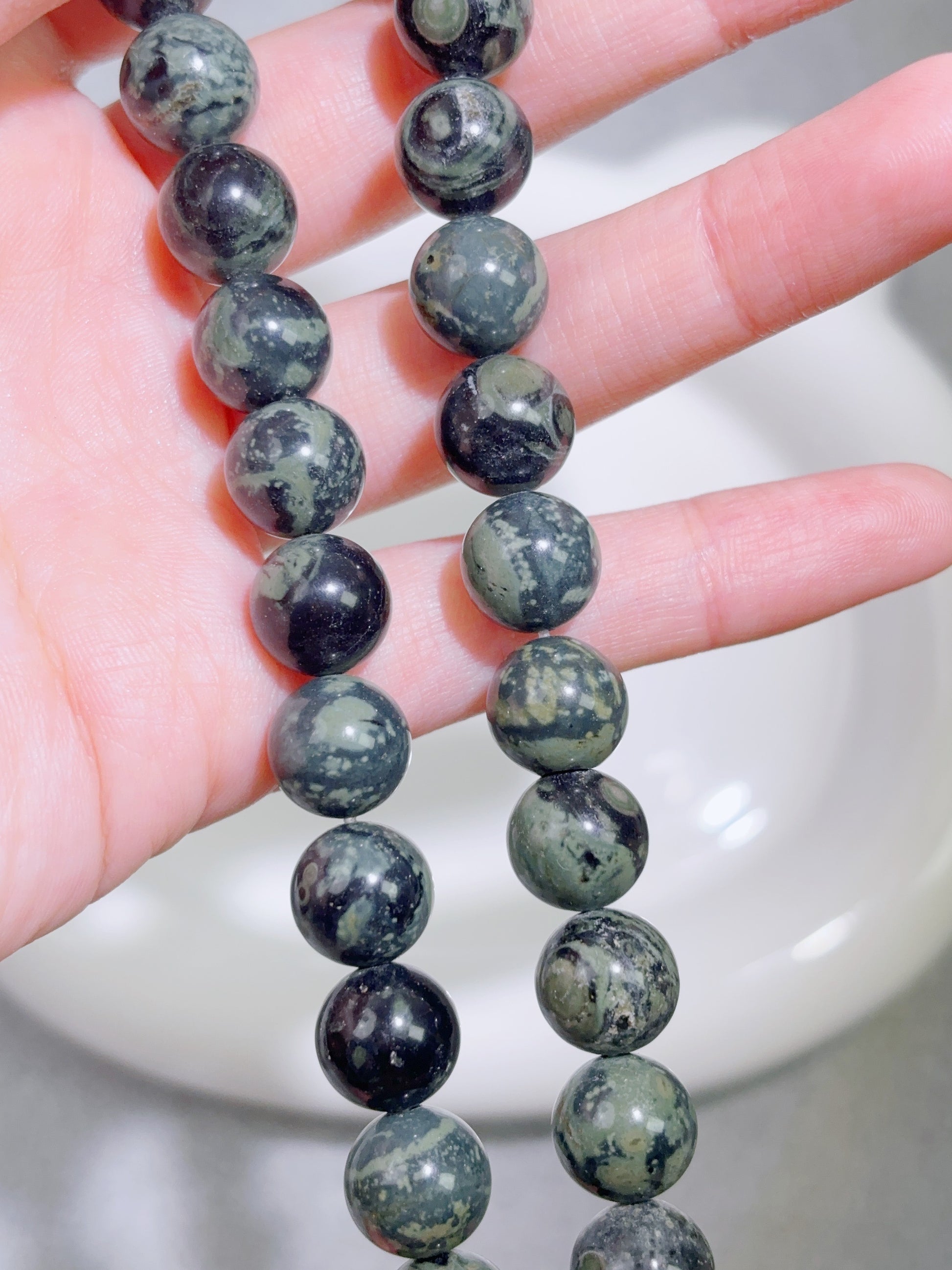 天然石連材-円珠-10 mm雀仔石/カンババジャスパー